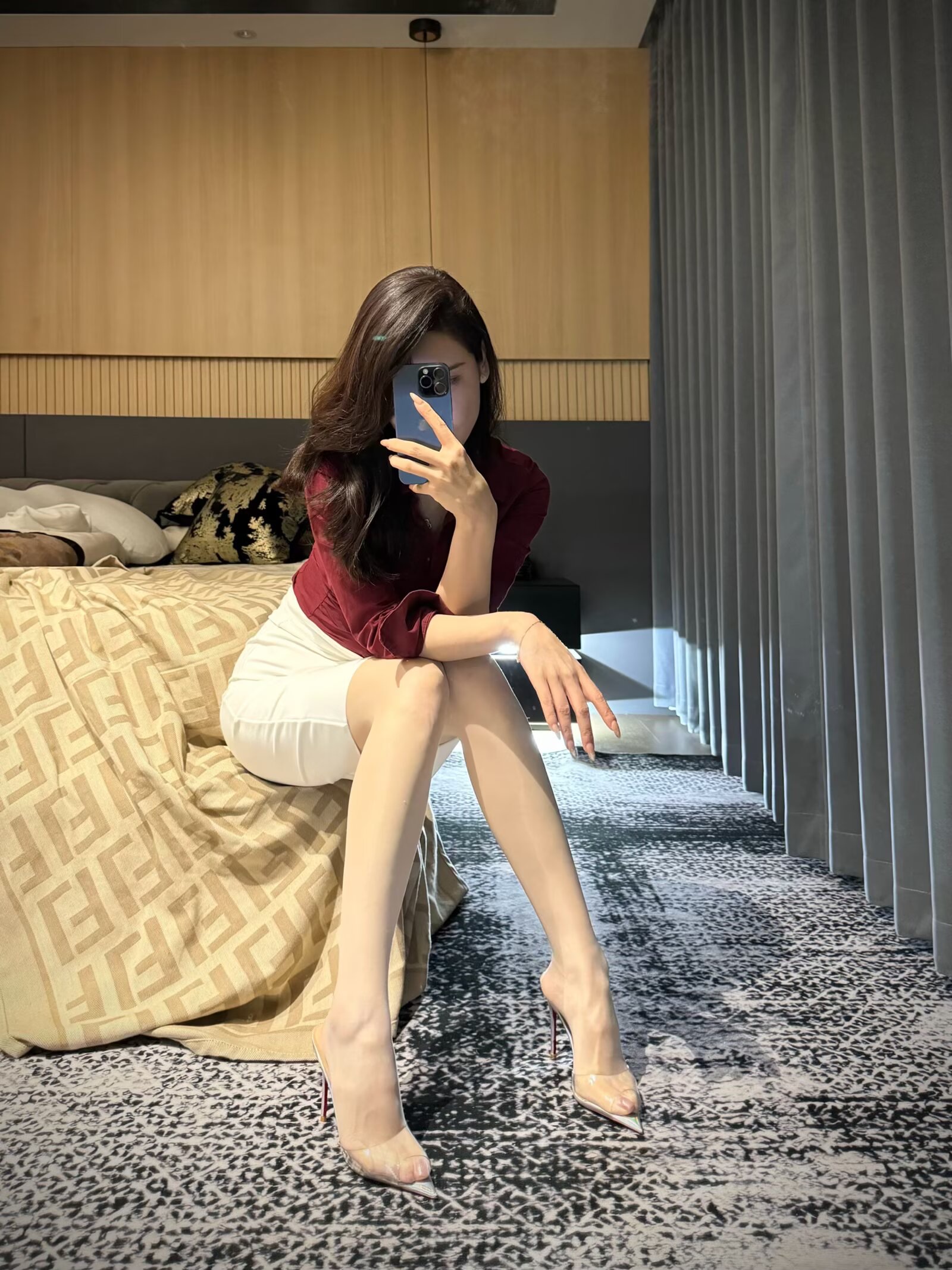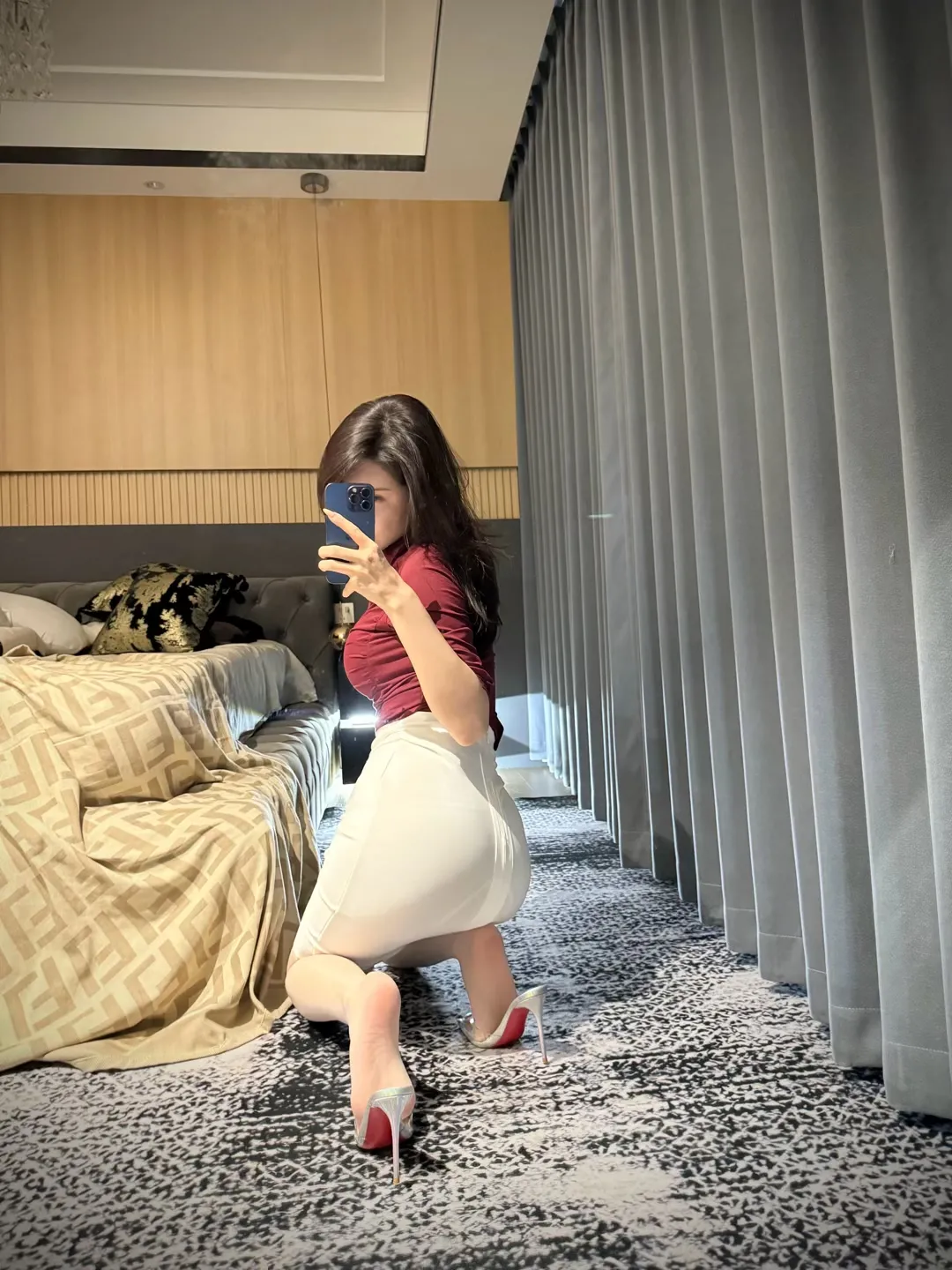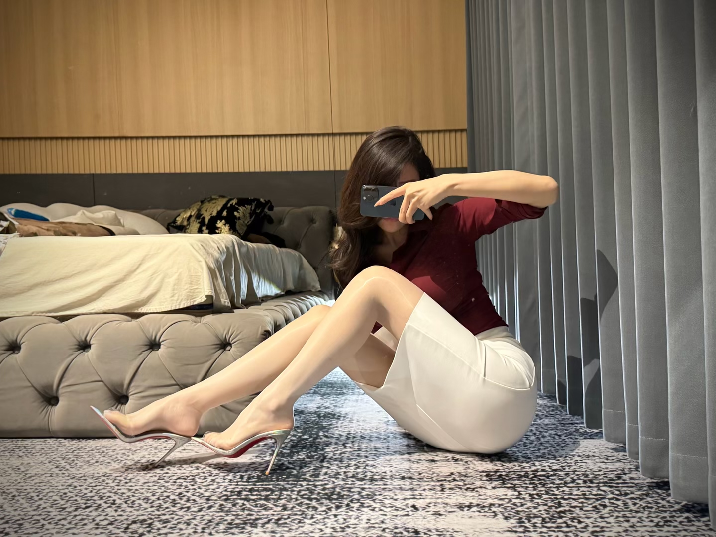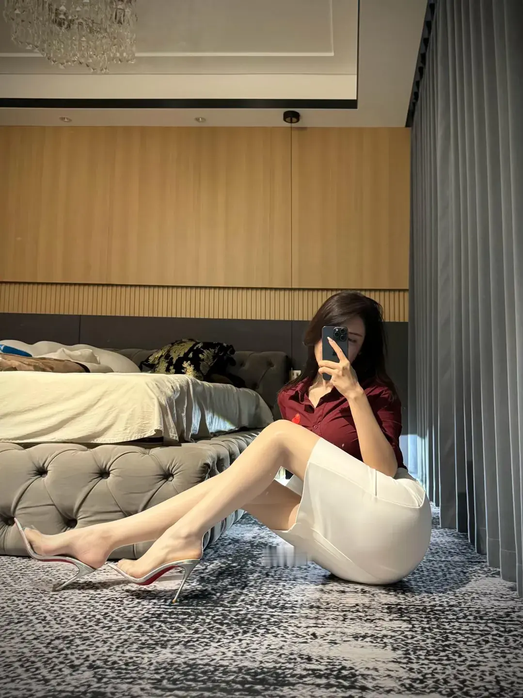 优雅自拍,红衣白裙,高跟鞋,室内自拍??
