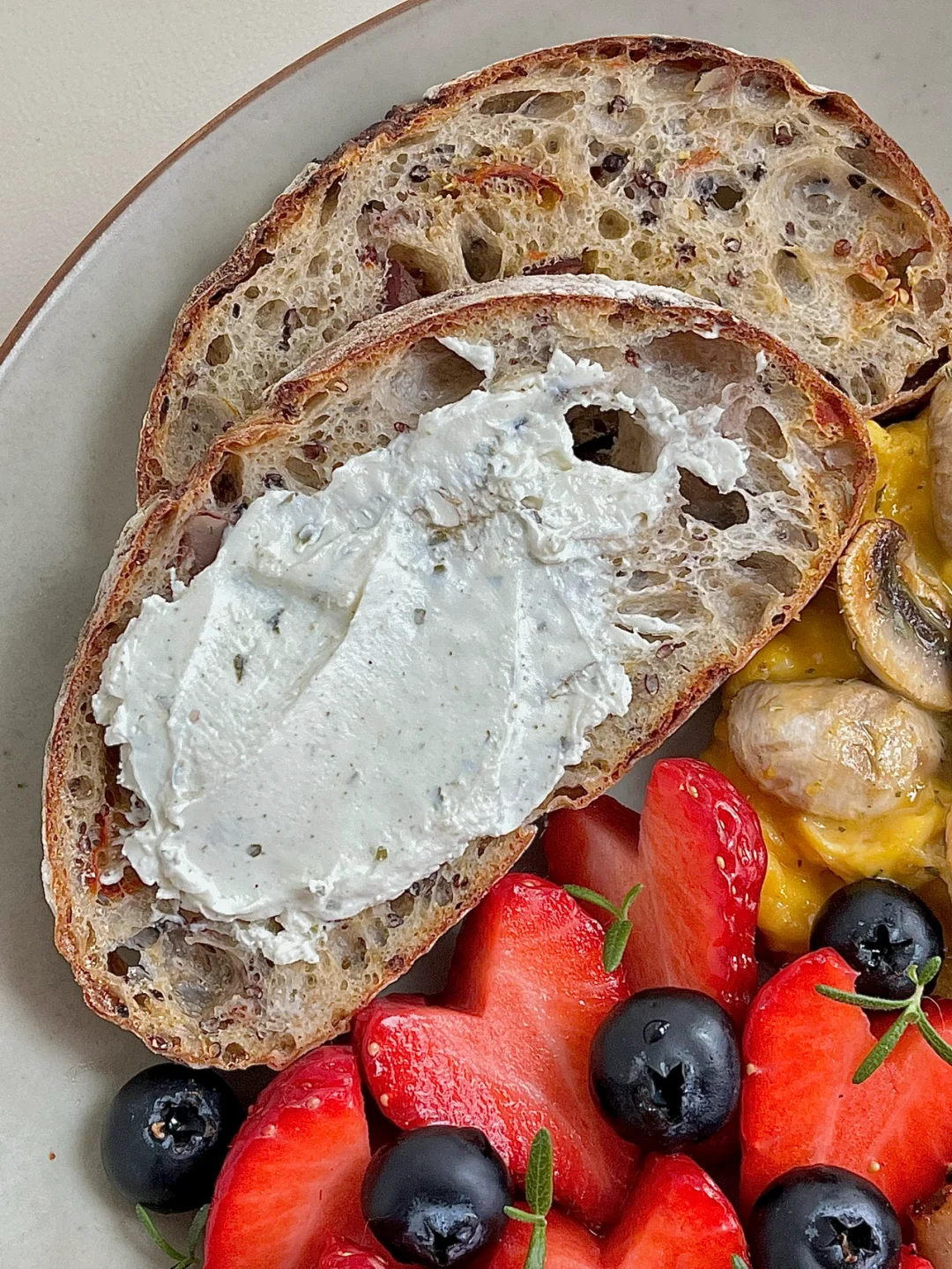周末的早上醒的比上班还要早,那就不要躺着消磨时间,早点起来给自己做了早餐,简单快手又不失营养 . 咸口的蒜香奶酪搭配欧包也是绝绝子😋 今天的口蘑滑蛋真的贼好吃,你们也可以试试这样做,口蘑也是怎么做我都爱吃。 . 祝宝宝们周末愉快呀!只是最近的天气有点凉,一点不像立夏的感觉,依然长袖长裤,突然好想热起来。
