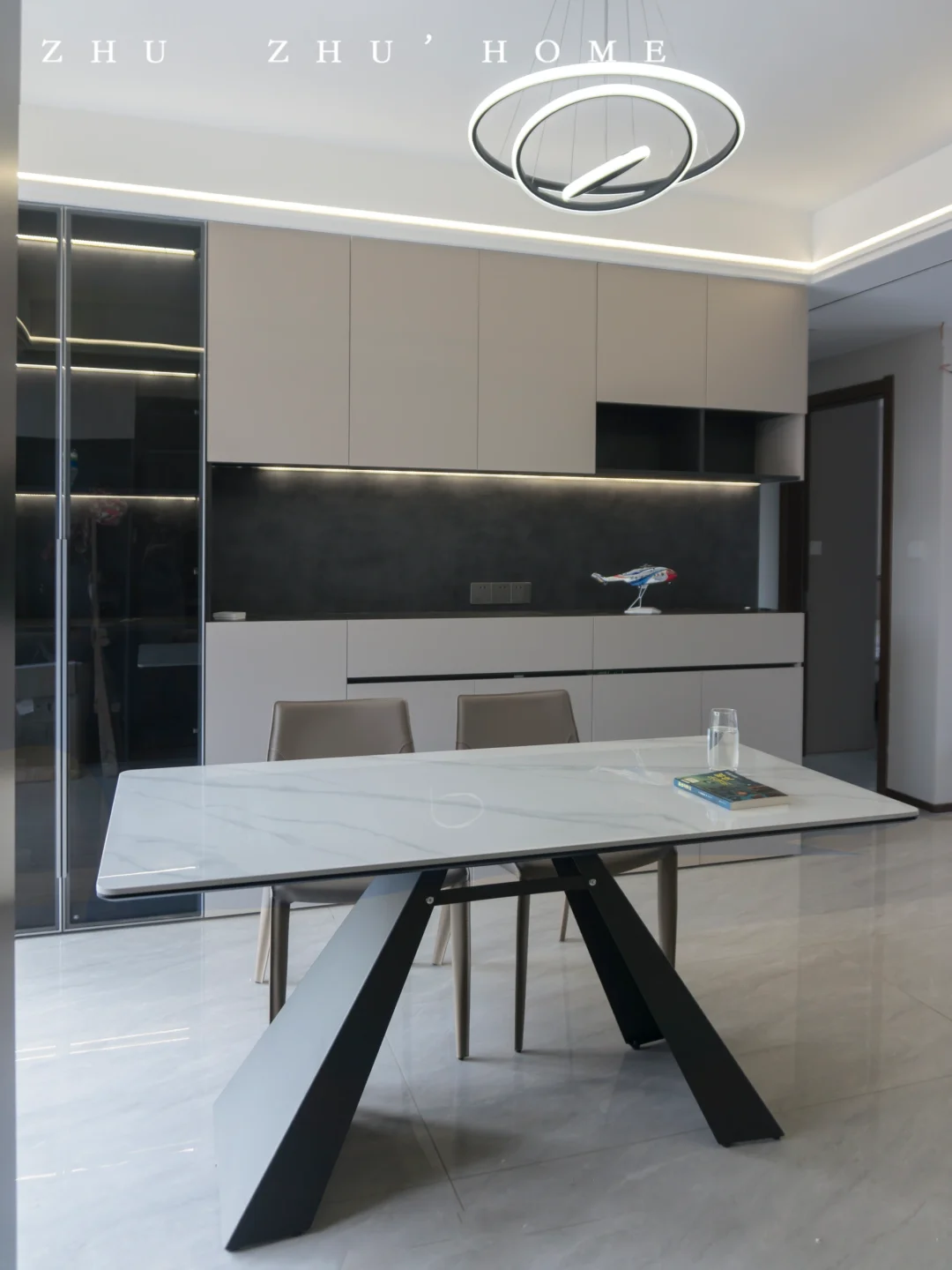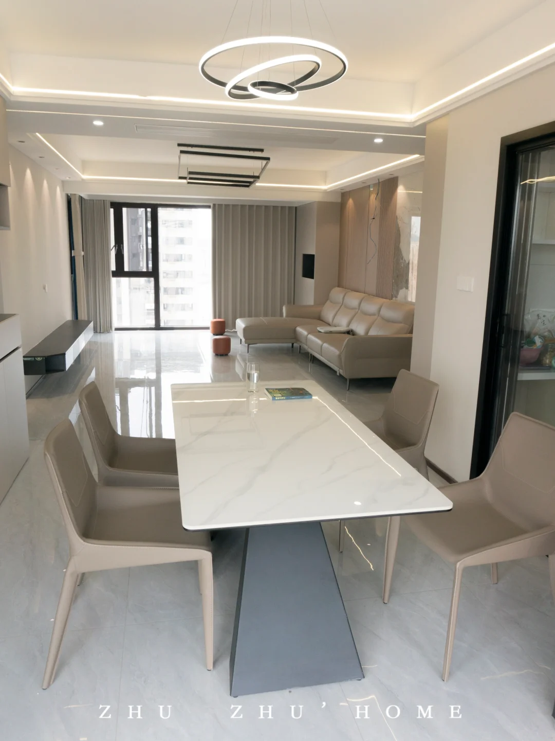 7⃣岩板餐桌根据餐厅户型选的长方形1.6*0.8的,满足8-10人吃饭