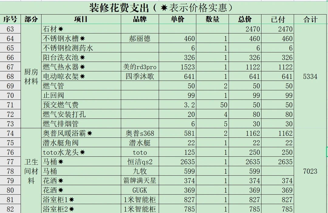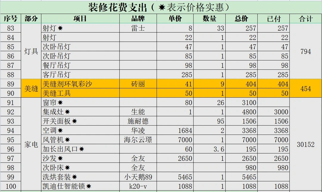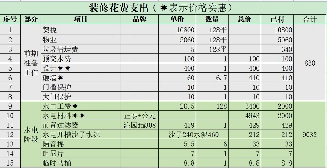 2⃣梳理了一份装修清单,按照时间顺序排好,哪些东西什么时候买,参考价格,一目了然
