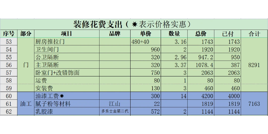 3⃣找到了一些团,目前有门(入户,房门,厨房推拉,淋浴隔断),封窗(认准广东),半包(工长),家电