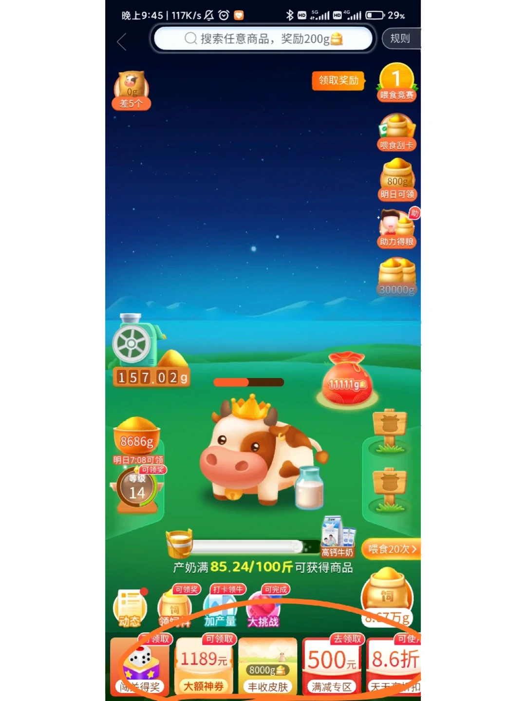[五R]牧场里面,尽量每个按钮都按一遍,能领取的饲料都领取,每天结束前,把饲料全部喂养出去