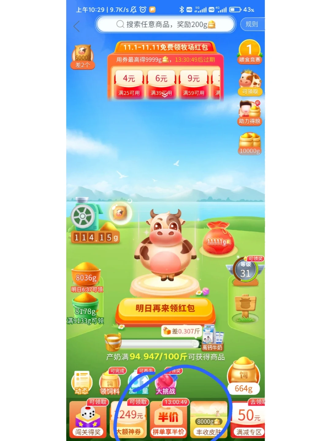 [三R]多多牧场和种菜得菜、浇水种树都要玩,不能目的性太强,那两个玩一小会儿就行,种菜里面优惠券也很多,并且都是大额的多