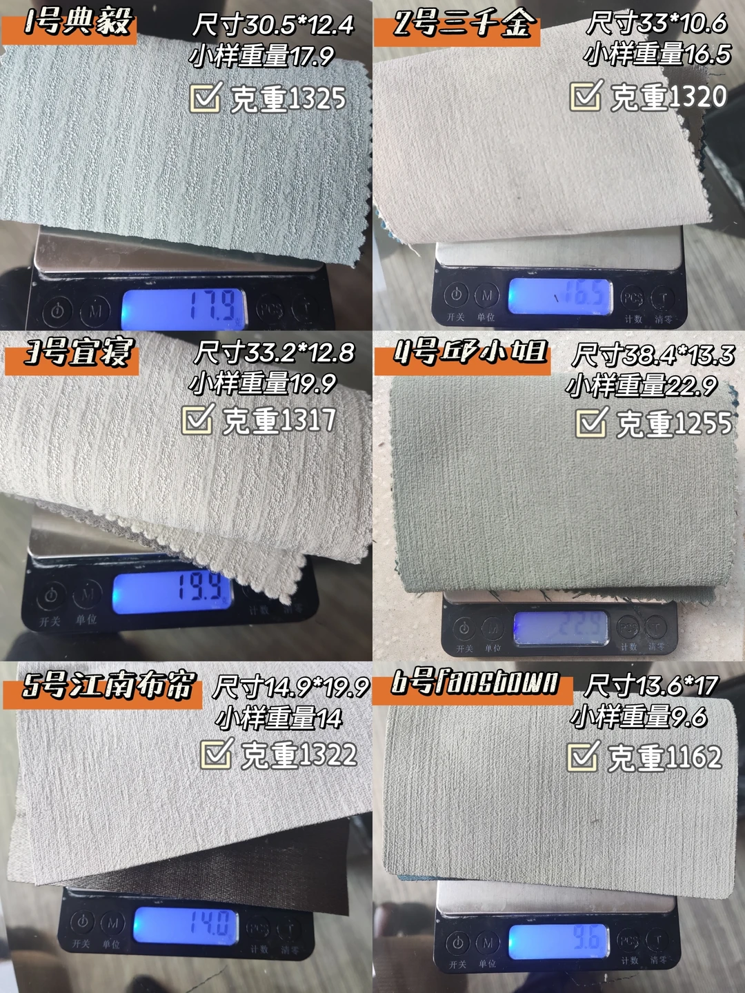 ✅方法:克重=小样重量/面积*2.8,克重越大,垂感越好,选取每个品牌中克重大的对比