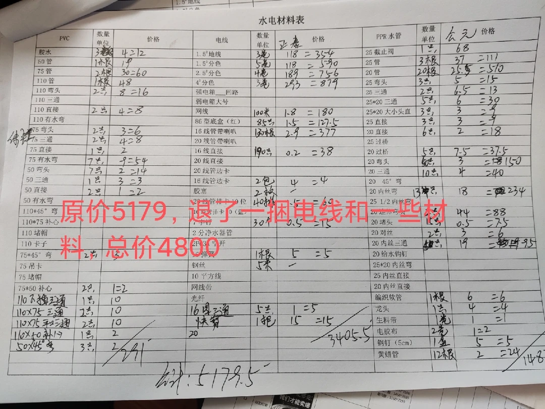 ✅防人之心不可无,防止师傅拿材料,一捆电线就是几百块,买的时候问下卖材料老板,师傅是否多开了材料