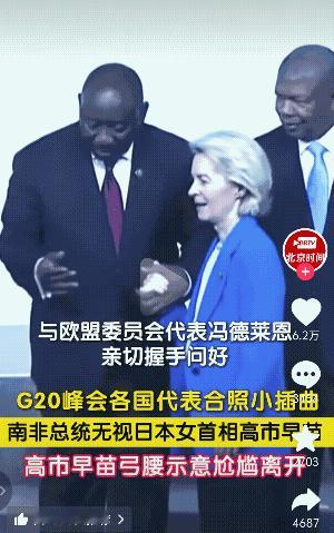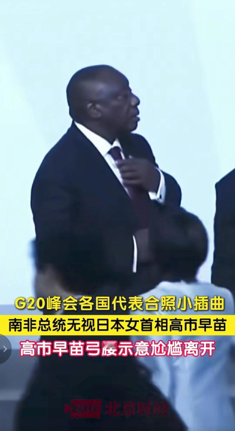 南非总统装作很忙的样子戳到我笑点了。 G20峰会准备拍合照环节,拉马福萨喜开颜笑的,用很和蔼的姿态与各国代表一一握手,轮到高市早苗直接被无视了,脸部表情秒变,比川剧变脸还快,看得真是解气。南非总统是个明白人,也很清楚,这个狗屎(高市)谁碰谁臭。 有网友评论说:南非总统有没有这个意思看不出来,不过这个总统很有意思。 还有网友喊话: 南非有啥特产,来点,我买点以表支持。 讲实在的,我越来越喜欢南非这黑老头,太给力了。这样一个爱憎分明、非常有正义感的人,这朋友我们交定了。 大家觉得南非总统表现得怎么样,欢迎讨论。