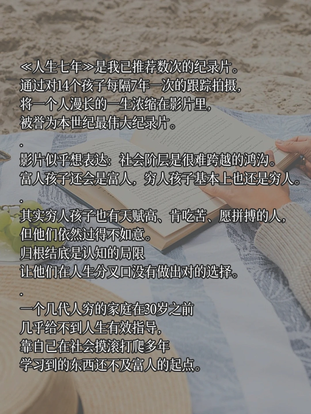 《人生七年》这是一部我推荐过好几次的纪录片。通过对14个孩子每隔7年一次的跟踪拍摄,将一个人漫长的一生浓缩在影片里,被誉为本世纪最伟大纪录片。