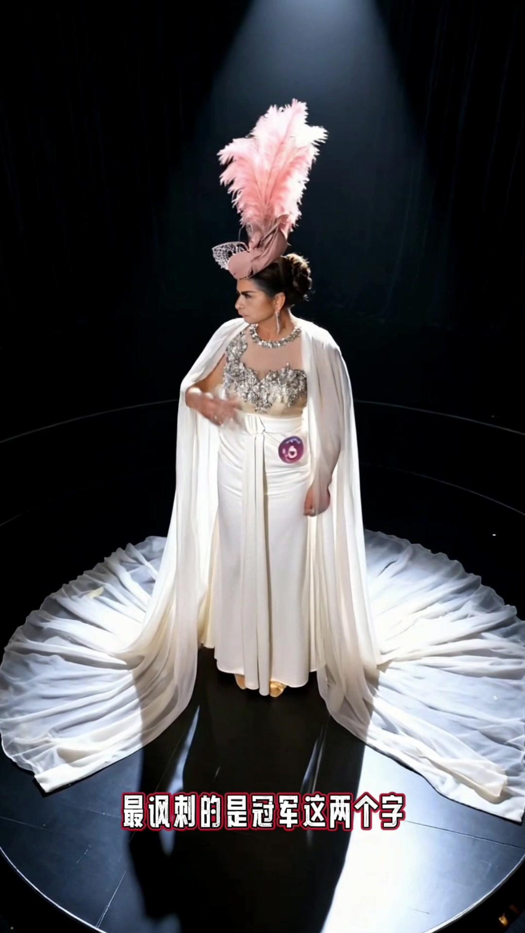 最讽刺的是“冠军”二字,当其他选手比唱跳比台风时,她直接把中老年春晚压轴节目搬进选秀现场。礼服精准踩中“努力装贵气却处处漏气”的雷点,连背景板都透着廉价影楼风,蓝得像刚从颜料盘里捞出来。