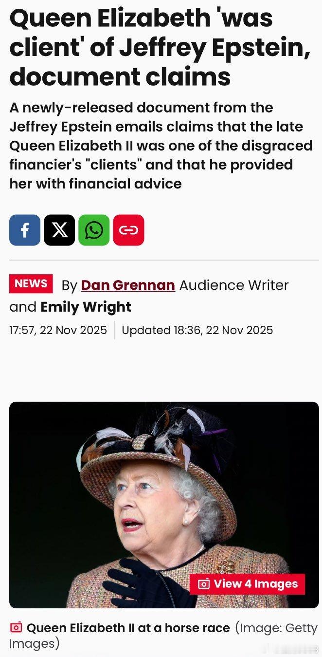 🚨🌎文件声称伊丽莎白二世女王是爱泼斯坦的客户女王表面总是那么和蔼可亲、端庄优雅——但话说回来,她毕竟生下了查尔斯国王和安德鲁王子。然后还有戴安娜。这是一个大俱乐部‼️