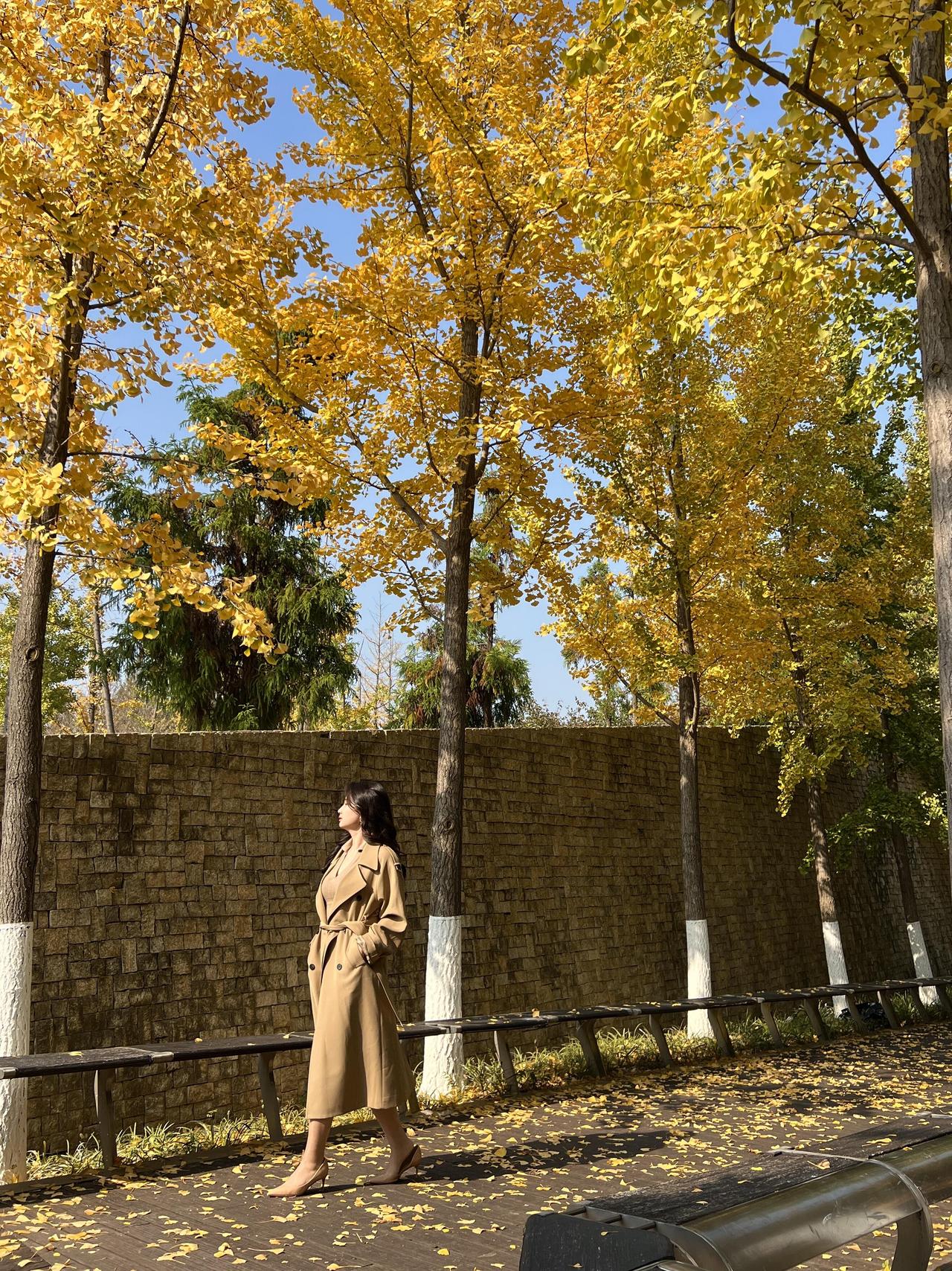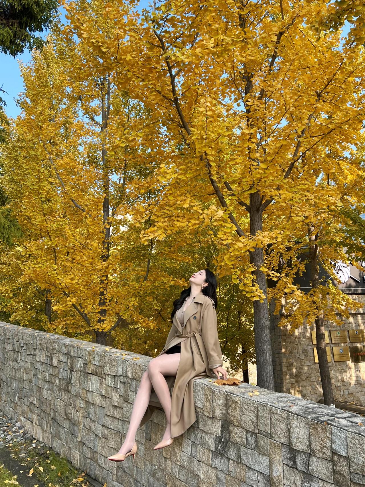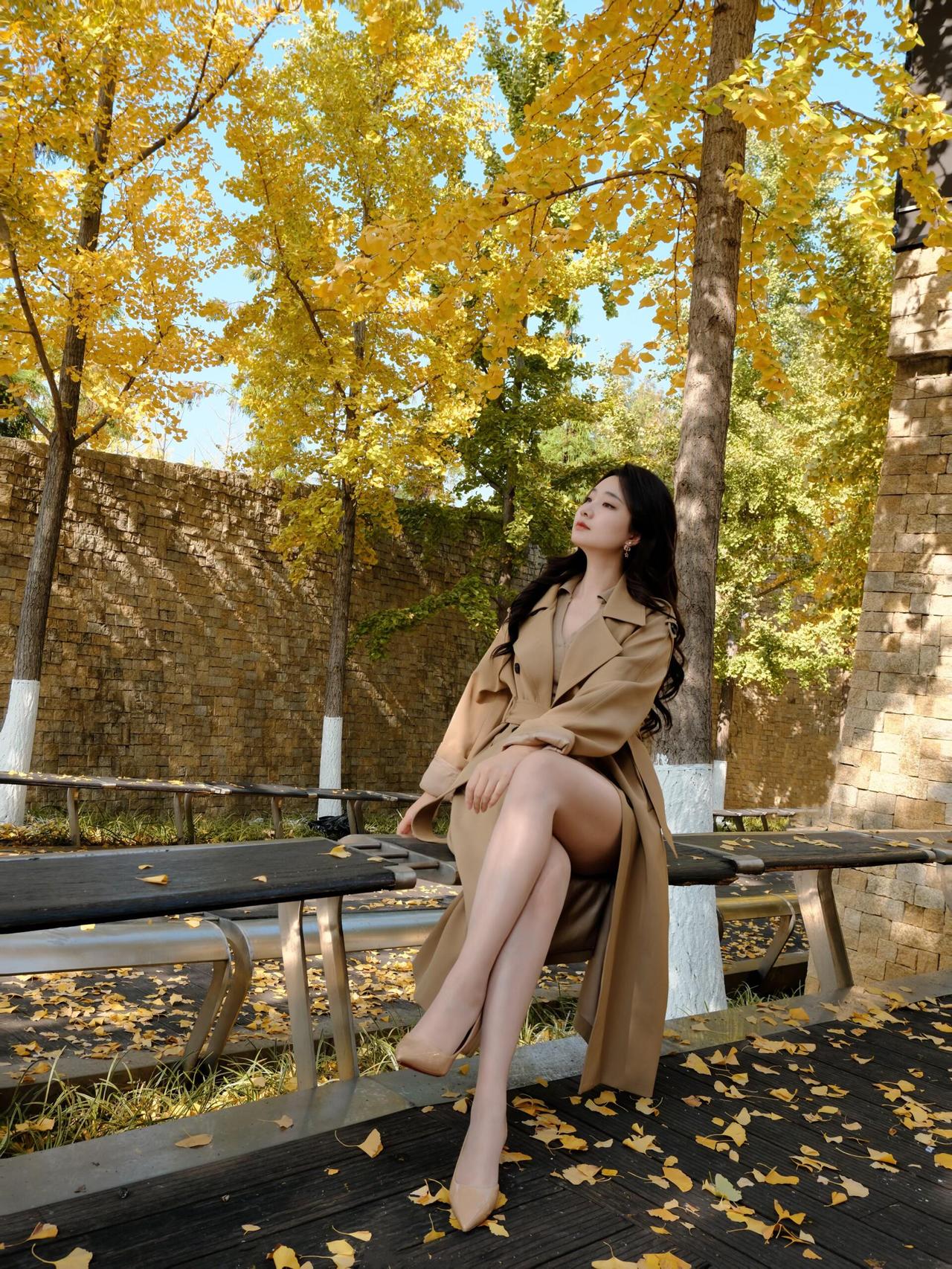 碧云天,黄叶地, 秋色连波。 风衣掠过金黄的银杏林, 落叶轻吻脚踝, 每一步都踩在秋天的诗意里。 镜头定格的瞬间, 是风与光的私语, 也是时光写给大地的情书。 · · · · · · · · · · · · · · · 银杏季出片攻略|(姿势+参数) ①坐长椅「腿交叉+手搭膝」,仰拍显脸小; ②靠墙「腿微屈+手摸发」,利用落叶当前景; ③慢走抓拍背影,步伐放大更有动态感。 🎞参数:光圈f2.8/快门1/500s/ISO100,逆光开1.2ev补光; 秋日氛围感直接拉满~