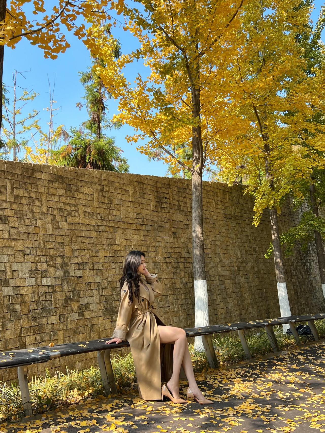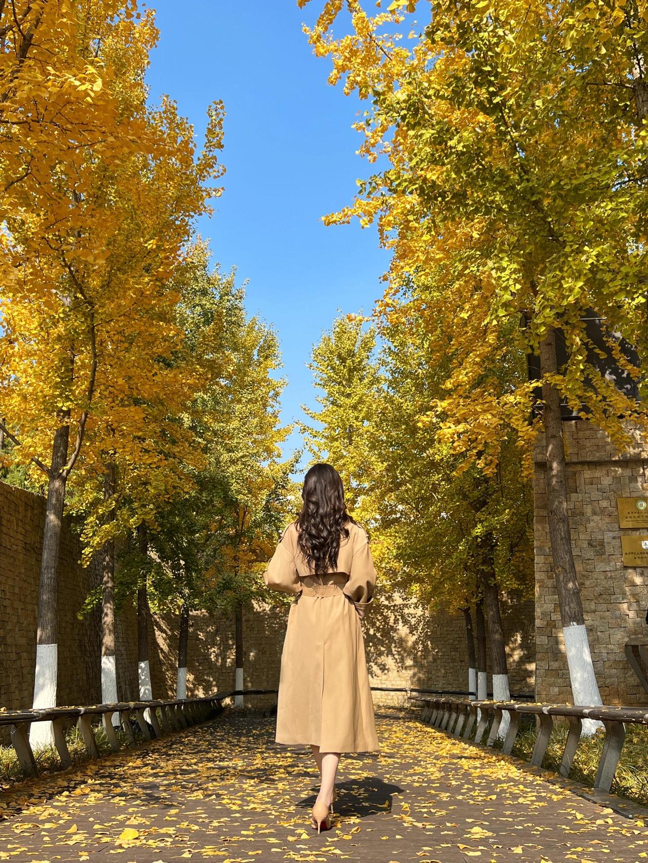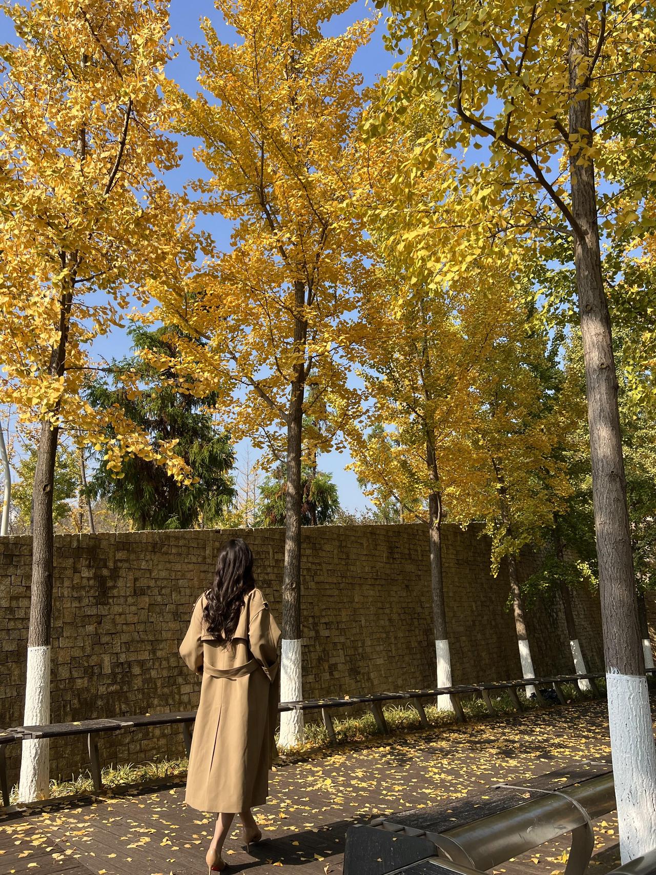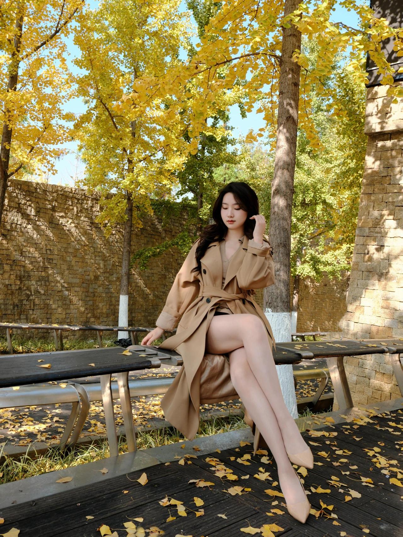碧云天,黄叶地, 秋色连波。 风衣掠过金黄的银杏林, 落叶轻吻脚踝, 每一步都踩在秋天的诗意里。 镜头定格的瞬间, 是风与光的私语, 也是时光写给大地的情书。 · · · · · · · · · · · · · · · 银杏季出片攻略|(姿势+参数) ①坐长椅「腿交叉+手搭膝」,仰拍显脸小; ②靠墙「腿微屈+手摸发」,利用落叶当前景; ③慢走抓拍背影,步伐放大更有动态感。 🎞参数:光圈f2.8/快门1/500s/ISO100,逆光开1.2ev补光; 秋日氛围感直接拉满~