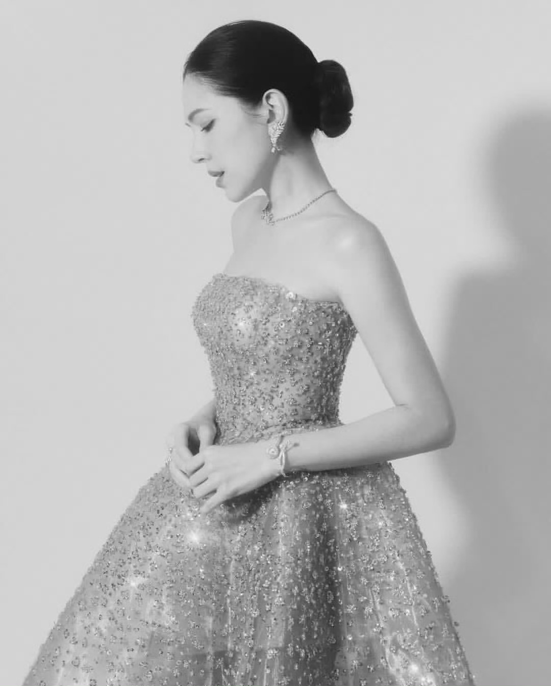 万万没想到王珞丹手里拿着的是蒋梦婕的礼服,单看好难看,上身效果好惊艳。