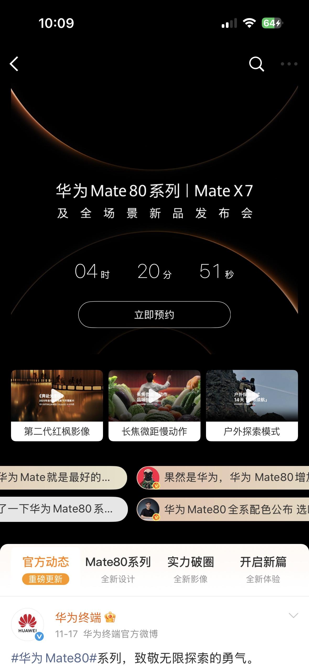 华为Mate80系列和Mate X7发布会,今天最热门的话题!手机普遍涨价,这一代会不会也涨价呢?