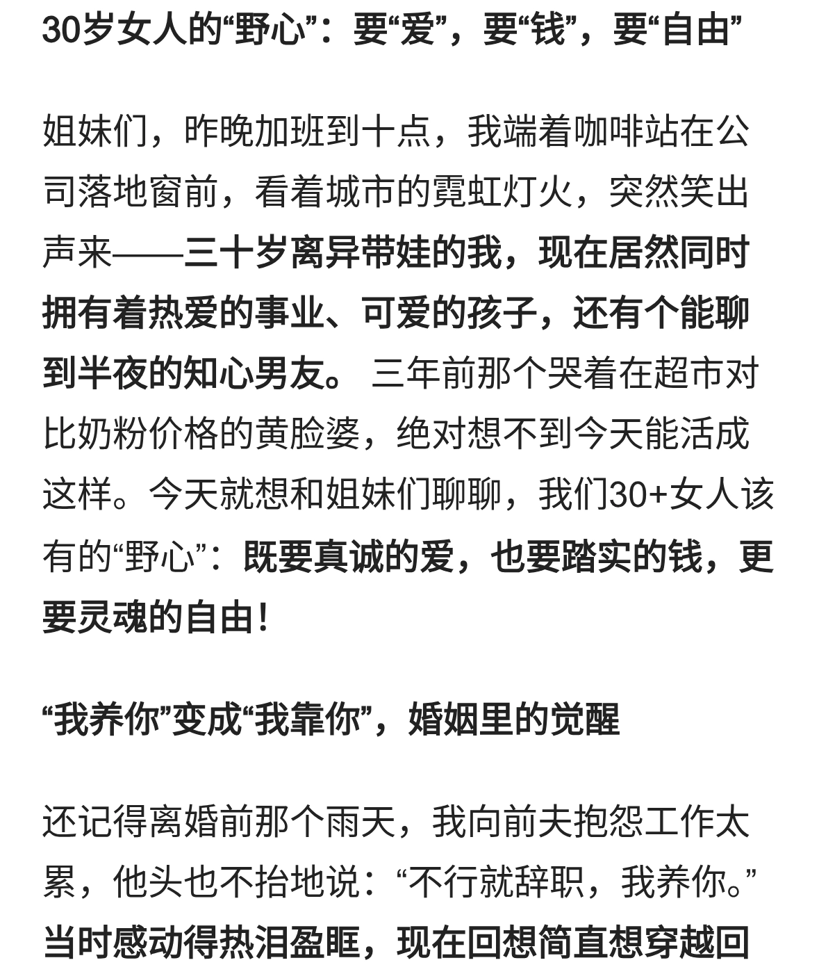 30岁女人的“野心”:要“爱”,要“钱”,要“自由”。