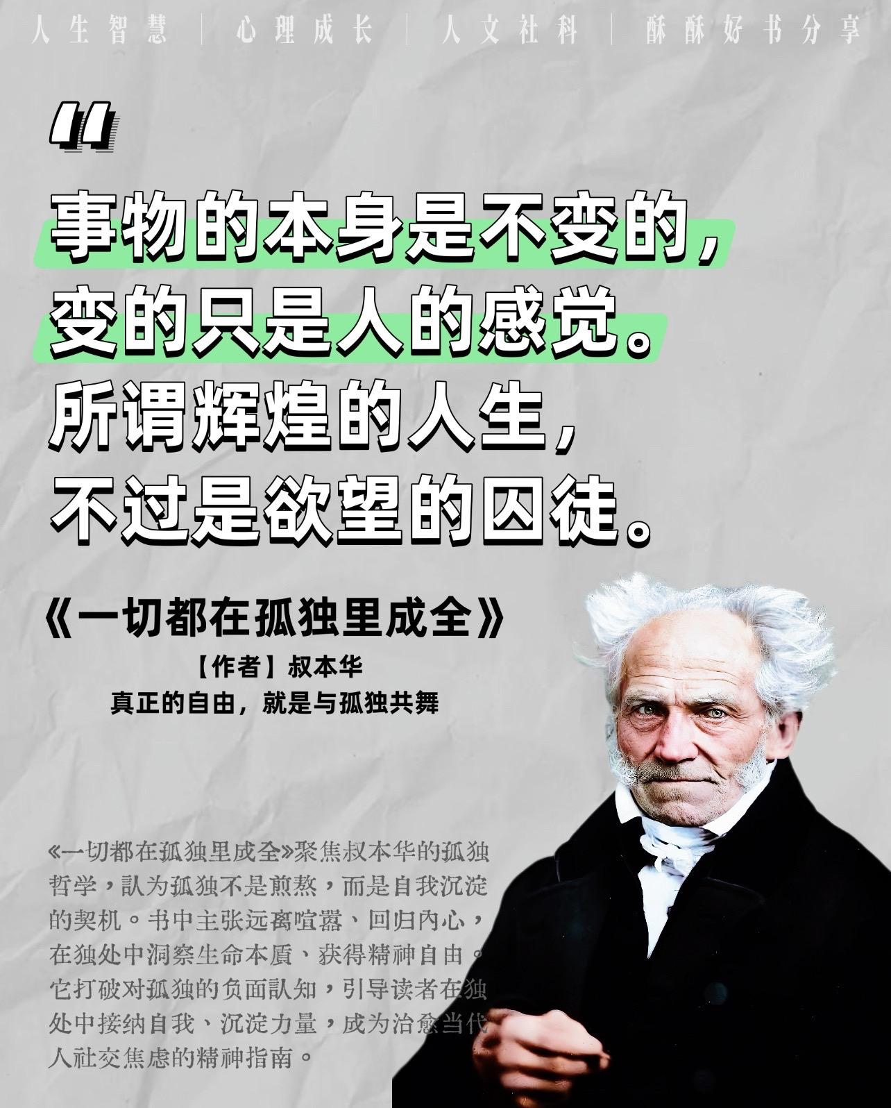 独处见自由,孤独藏人生答案!叔本华在《一切都在孤独里成全》戳破真相:独...