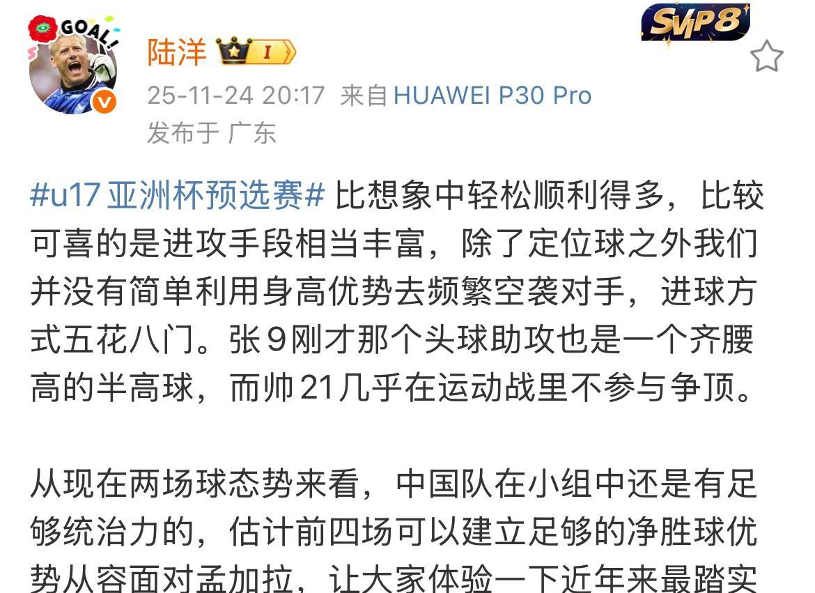 国少14-0大胜东帝汶,媒体人陆洋表示国少的进攻手段相当丰富,没有简单的利用身高优势去进攻,进球方式也是五花八门。 同时他认为按照目前态势,国少在小组还是有统治力的,前四场可以建立起足够的净胜球优势,最后一场从容面对孟加拉。 其实完全可以不用算净胜球,孟加拉打东帝汶才进5个,相比之下我们肯定要更强,不过确实更多净胜球,一是能力压孟加拉占据榜首,再就是最后一场心理优势会更大一些!