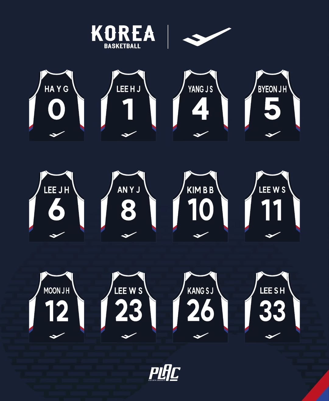 韩国男篮公布世预赛第一窗口期对阵中国男篮的队员名单及球衣号码👇