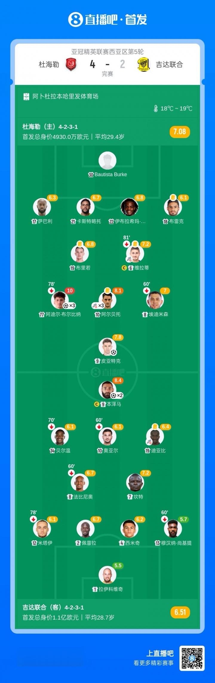 本场比赛本泽马代表吉达联合上演梅开二度,但难挽败局。杜海勒方面皮亚特克破门,布尔比纳上演帽子戏法,维拉蒂送助攻,路易斯·阿尔贝托助攻戴帽。