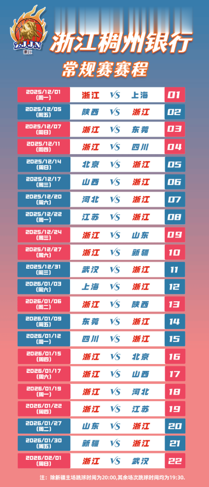 虎扑11月25日讯浙江队官方公布浙江女篮新赛季赛程。