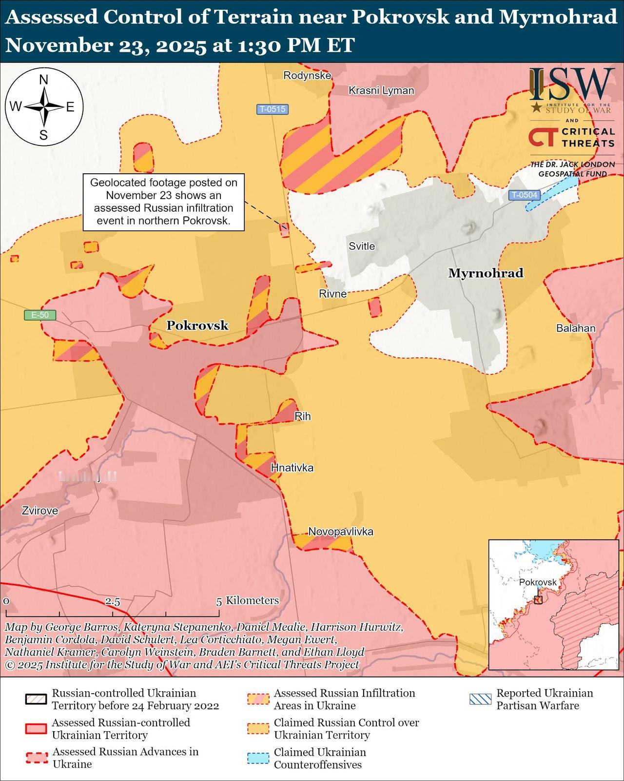 波克罗夫斯克方向的形势仍然严峻而充满活力,俄军将继续推进关闭波克罗夫斯克-迈尔诺Ad Pocket和乌克兰军队继续发动反击。乌克兰部队还针对支持波克罗夫斯克战役的俄罗斯物流,实施了战术级空中对接。 ISW继续评估俄罗斯部队可能会在适当的时候完成波克罗夫斯克和迈尔诺赫拉德的任务这些干扰的手术影响在当时仍然不清楚。俄罗斯可能会试图利用波克罗夫斯克事件的信息效应来掩盖克里姆林宫的虚假叙事战场上的胜利是不可能的。尽管如此,俄罗斯在战场上的胜利并不,而且俄罗斯部队在21个月内仍然落后40公里然后开始循环波克罗夫斯克-米尔诺赫拉德口袋。拆除顿涅茨克州剩余地区的运动,包括乌克兰规模更大、人口更多的堡垒带,将持续数年狂暴的战斗,俄罗斯军队似乎没有能力快速包封、穿透或其他规模的城市自2022年以来,他们在堡垒带里。顿涅斯克战况 波夫罗夫斯克 库皮扬斯克战斗