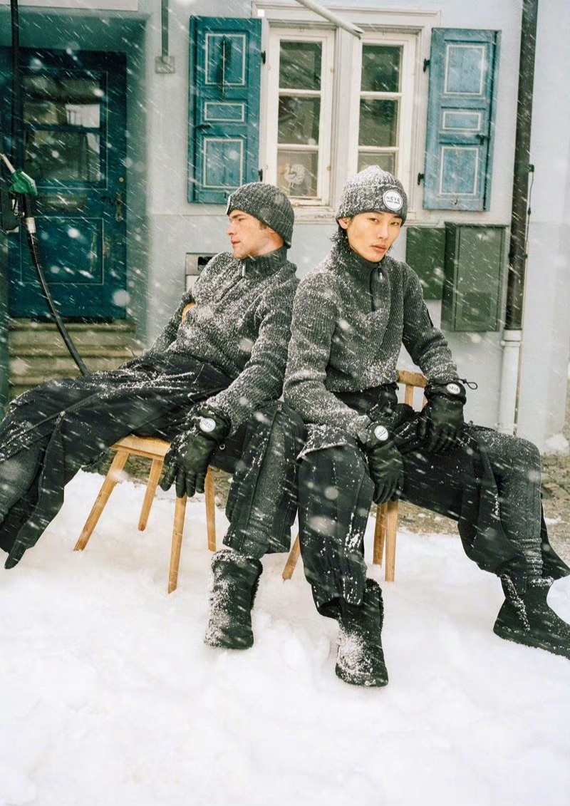 Giorgio Armani Neve F/W 2025 Campaign 阿玛尼Neve秋冬滑雪系列白雪皑皑的阿尔卑斯山脉Sean O'Pry和韩模Taemin Park等出镜摄影: Lukas Wassmann