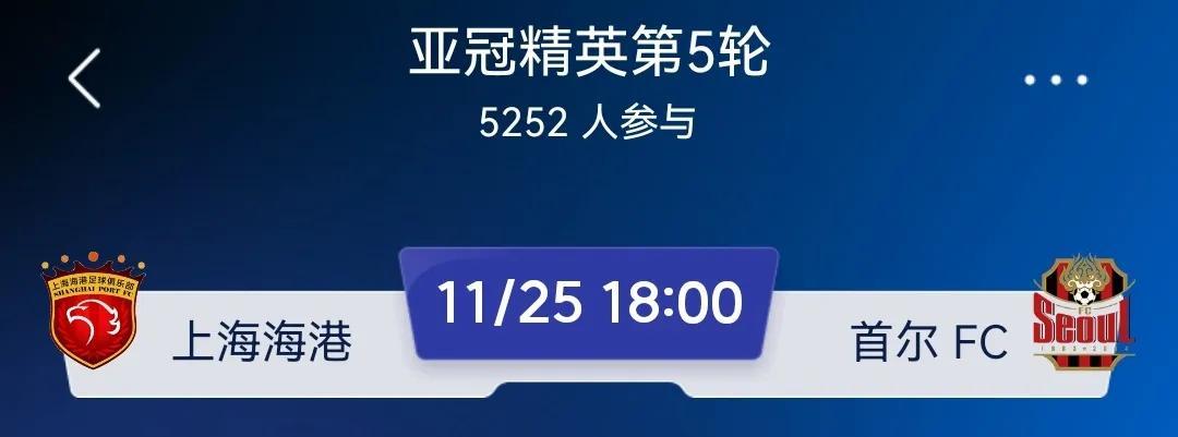 上海海港亚冠精英赛排名倒数第一名,以前有战略性放弃的借口,现在中超夺冠了,借口没有了,上海海港能争一口气吗?中超三连冠上海海港今晚会不会再羞人?让我们拭目以待吧! 上海海港在2025-2026赛季亚冠精英赛中1平3负,还未取得一场胜利,小组垫底,今晚11月25日18时对阵首尔FC的比赛,是上港为自己正名的好机会,也是冲击本赛季亚冠首胜的好机会。 中超亚军和季军上海申花和成都蓉城亚冠比赛也马上开打,希望双方打出中国球队精气神,为中国足球争光,加油!