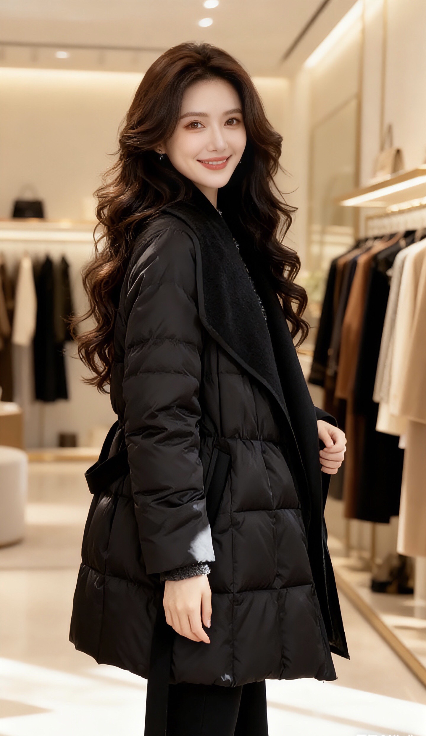 韩系名媛风系带收腰保暖羽绒服女2025冬季新款洋气大翻领显瘦外套高级穿搭 遮肉显瘦 时髦穿搭 冬季穿搭 显瘦穿搭