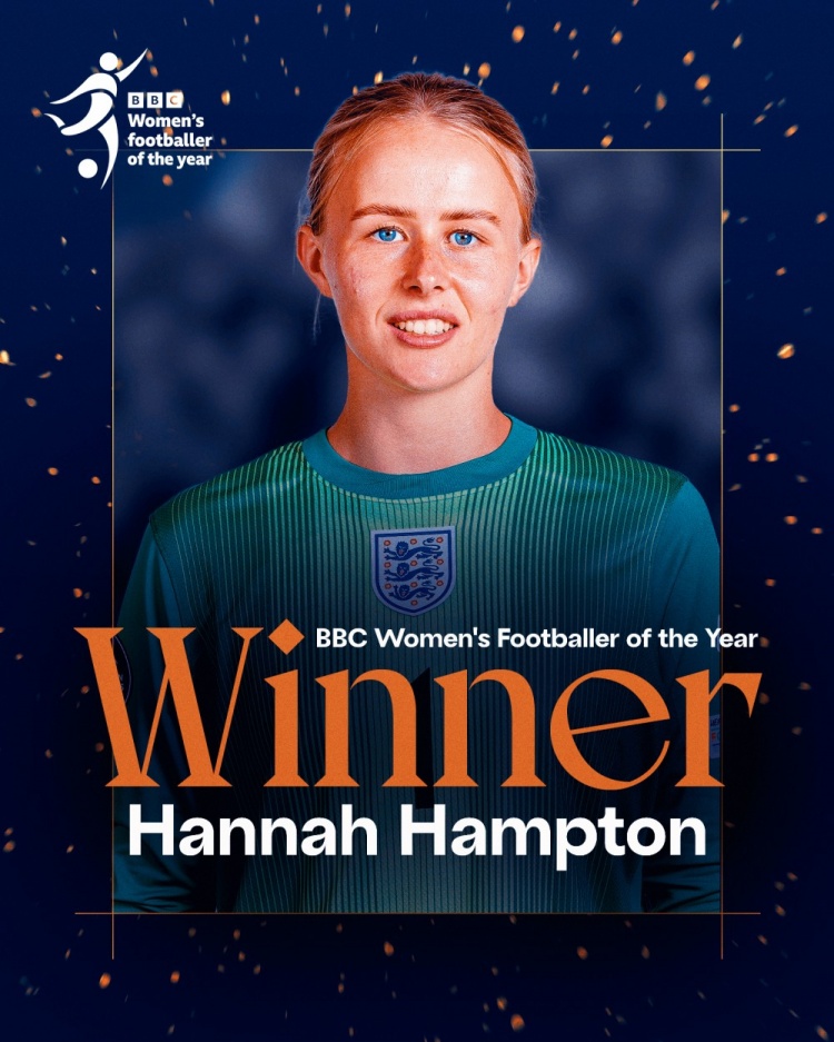 汉普顿上赛季帮助切尔西女足赢得联赛、足总杯、联赛杯冠军,而在国家队层面,她随英格兰女足卫冕欧洲杯。BBC官方社媒晒出海报,确认汉普顿被评选为2025年BBC年度最佳女足球员。