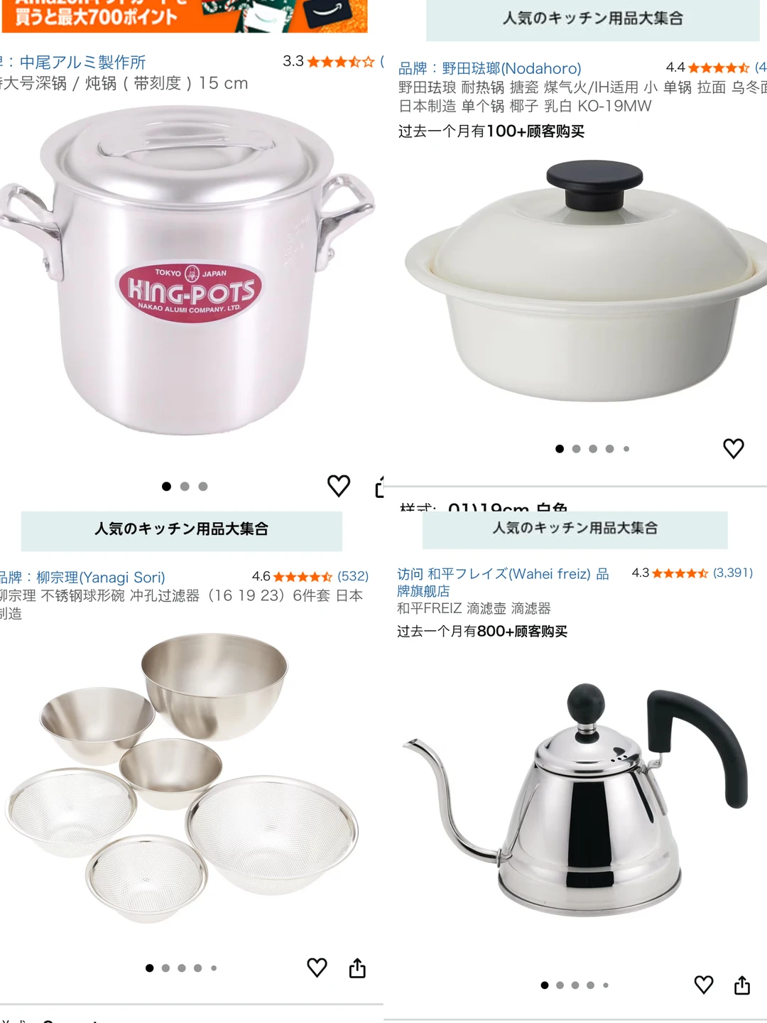 🔍品牌名 像柳宗理、中尾锅、野田珐琅