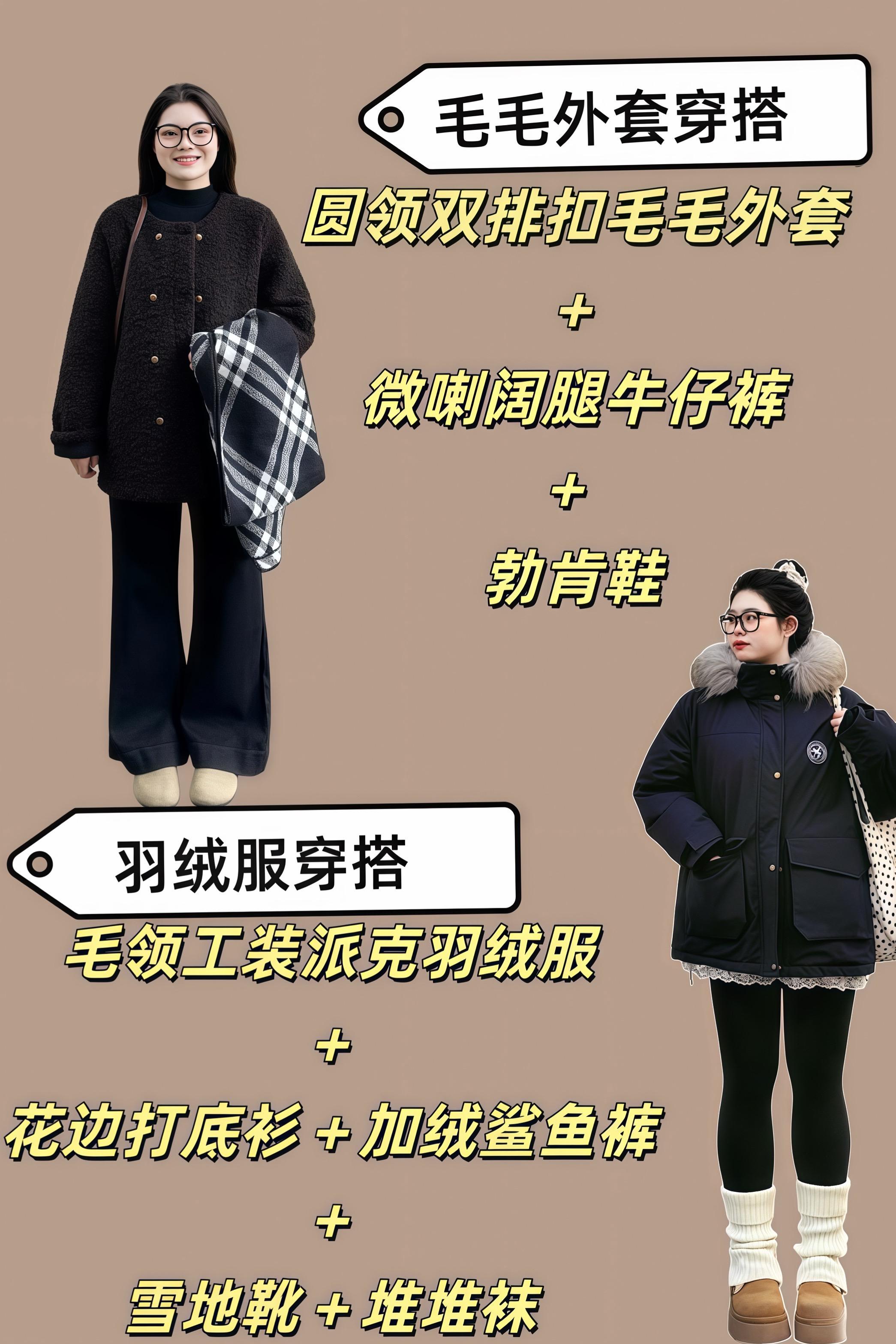 微胖女孩秋冬也要有效穿搭 冬季穿搭羽绒服穿搭毛毛外套