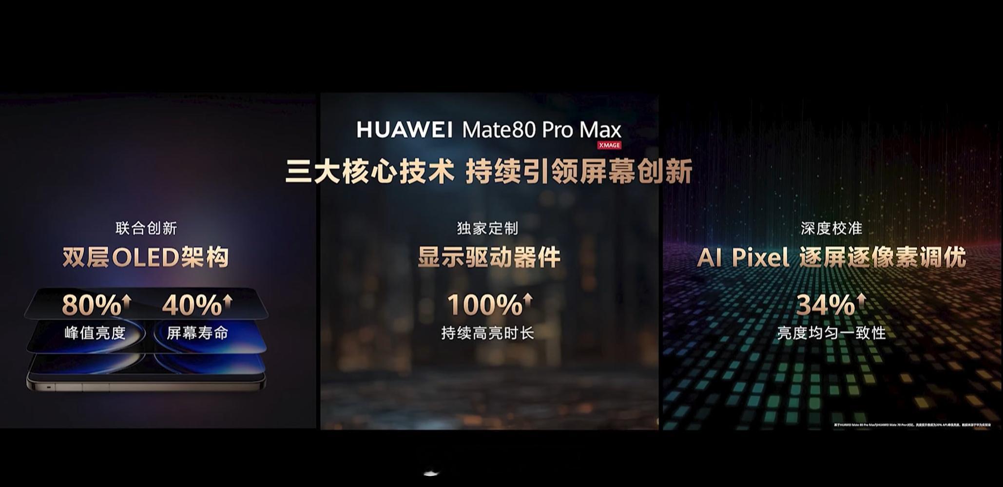 在此之前,最高亮度的手机屏幕是6000尼特...华为Mate80 ProMax首发8000尼特亮度灵珑屏,相当于领先行业超过3成。这样一来有个好处,户外使用的时候,完全无惧强光,也能看清楚屏幕内容,细节更丰富。除了超高亮度,双层OLED加持,显著提高OLED屏幕的寿命,好评。