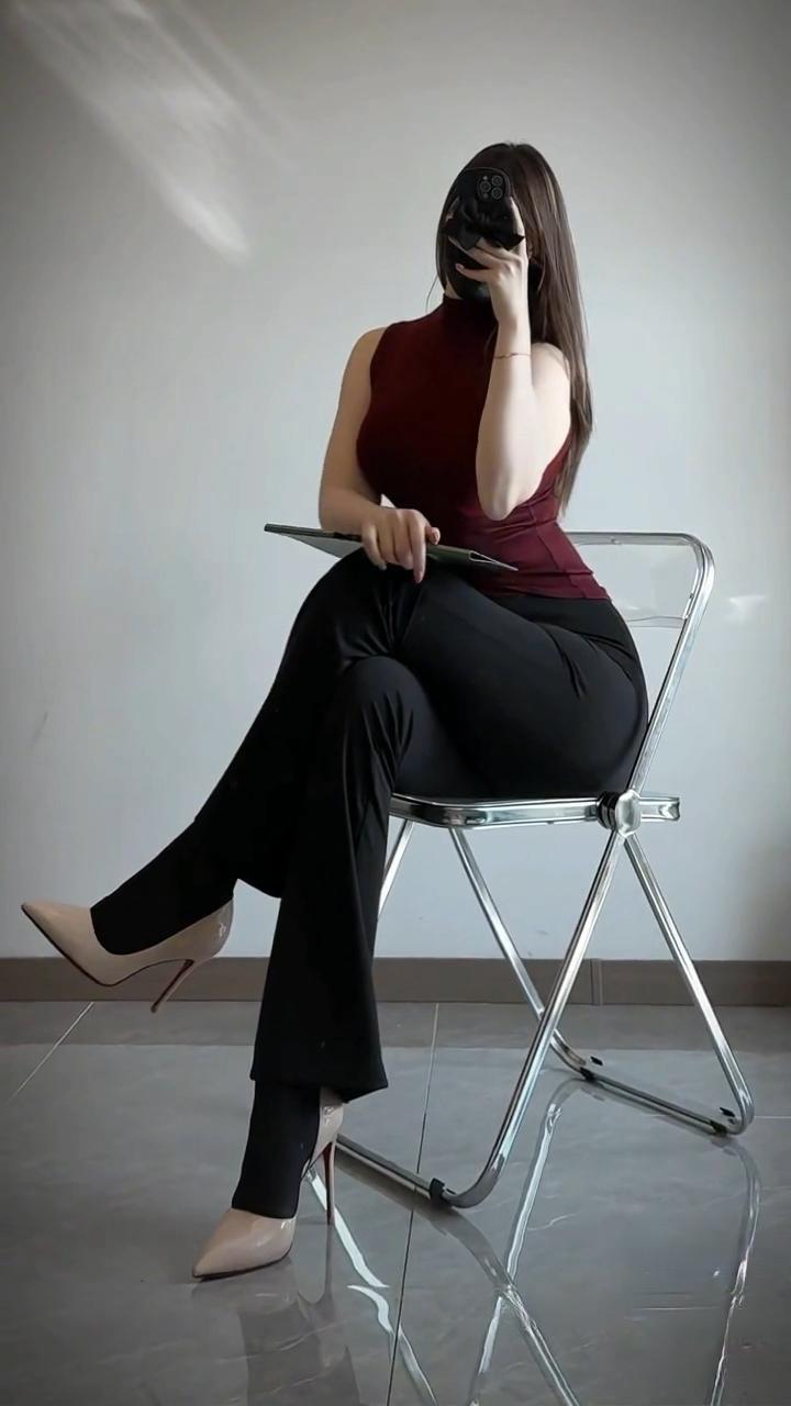 这组穿搭对“职场女人味”平衡感的拿捏十分精妙——酒红色无袖高领上衣自带温柔且明艳的气场,贴身版型恰到好处地勾勒出流畅线条,不过分张扬却极具记忆点。 搭配黑色微喇裤,垂坠感恰好修饰腿型,裸色高跟鞋又悄然拉长比例,手中的平板让“职场感”更为自然。整体堪称“专业中蕴含精致”的典范,相较于刻板的通勤装,多了一份鲜活的女性魅力。职场知性穿搭 职场轻熟感穿搭