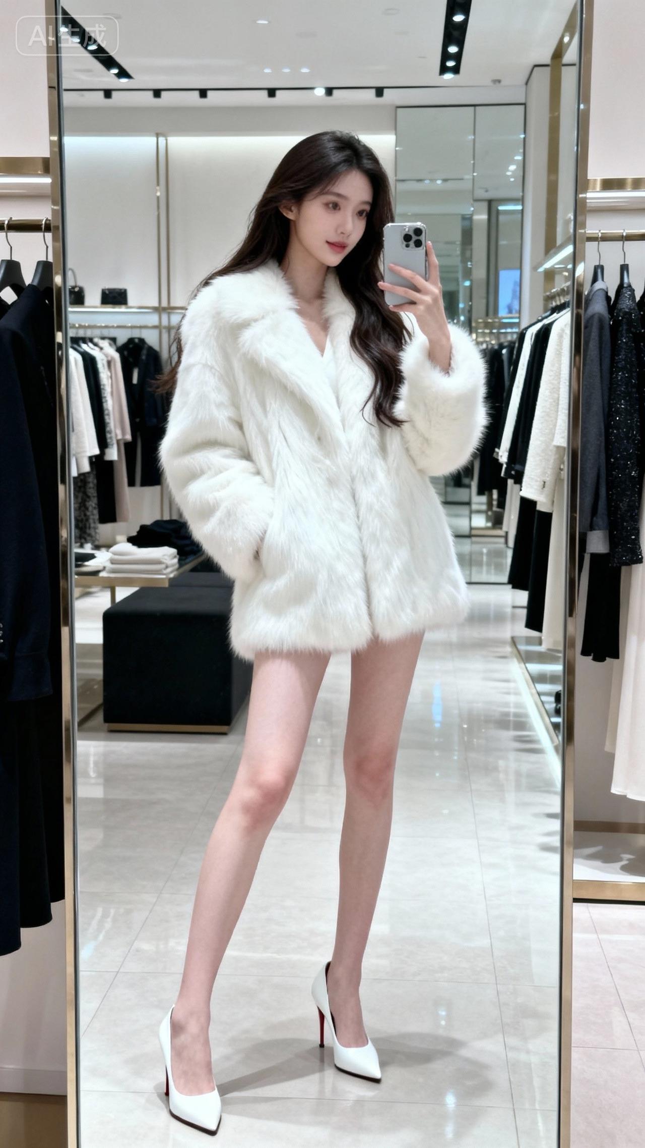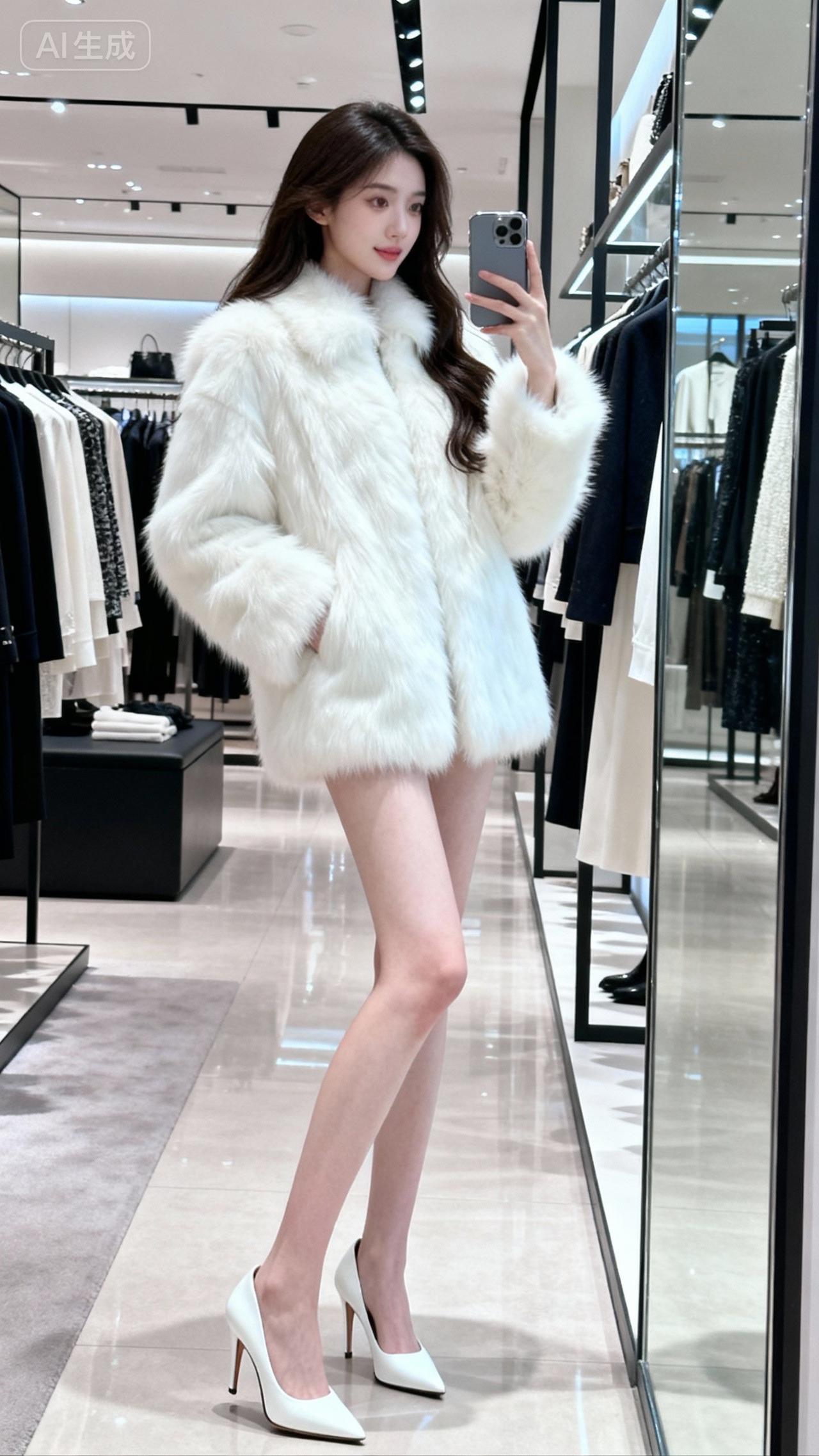 毛茸茸的白色外套,搭配高跟鞋,温暖又时尚!🌟👗👠毛绒绒穿搭