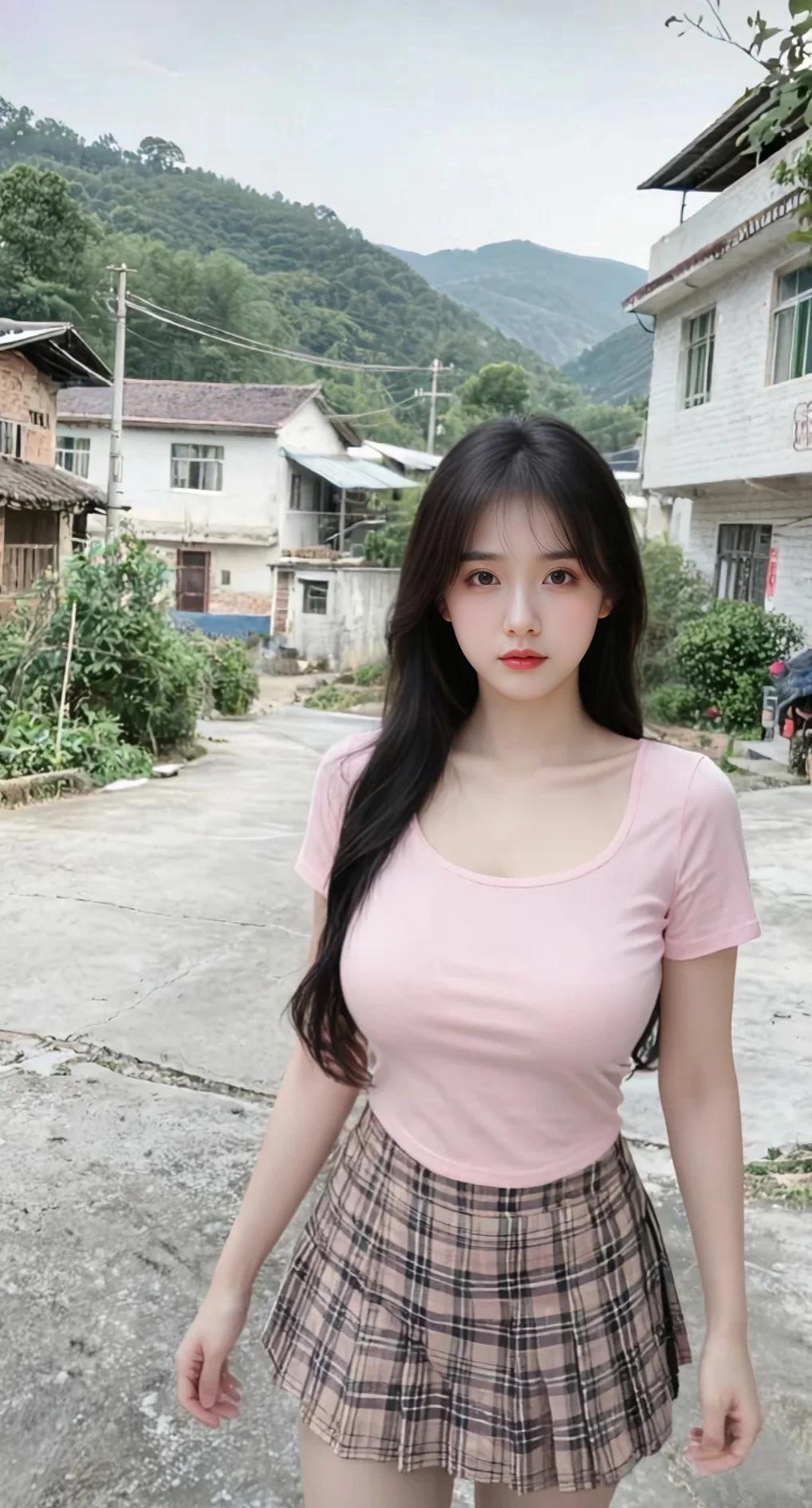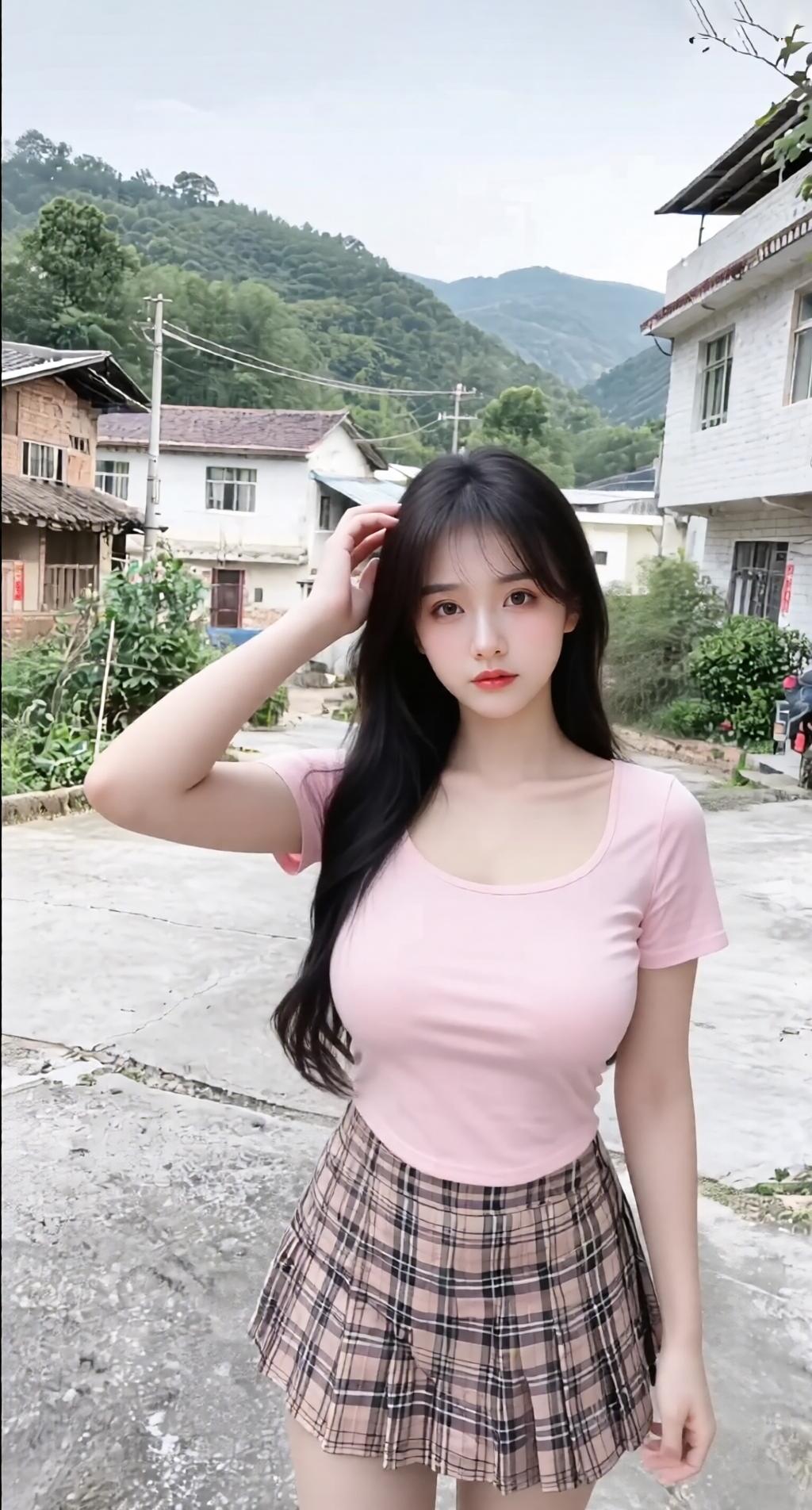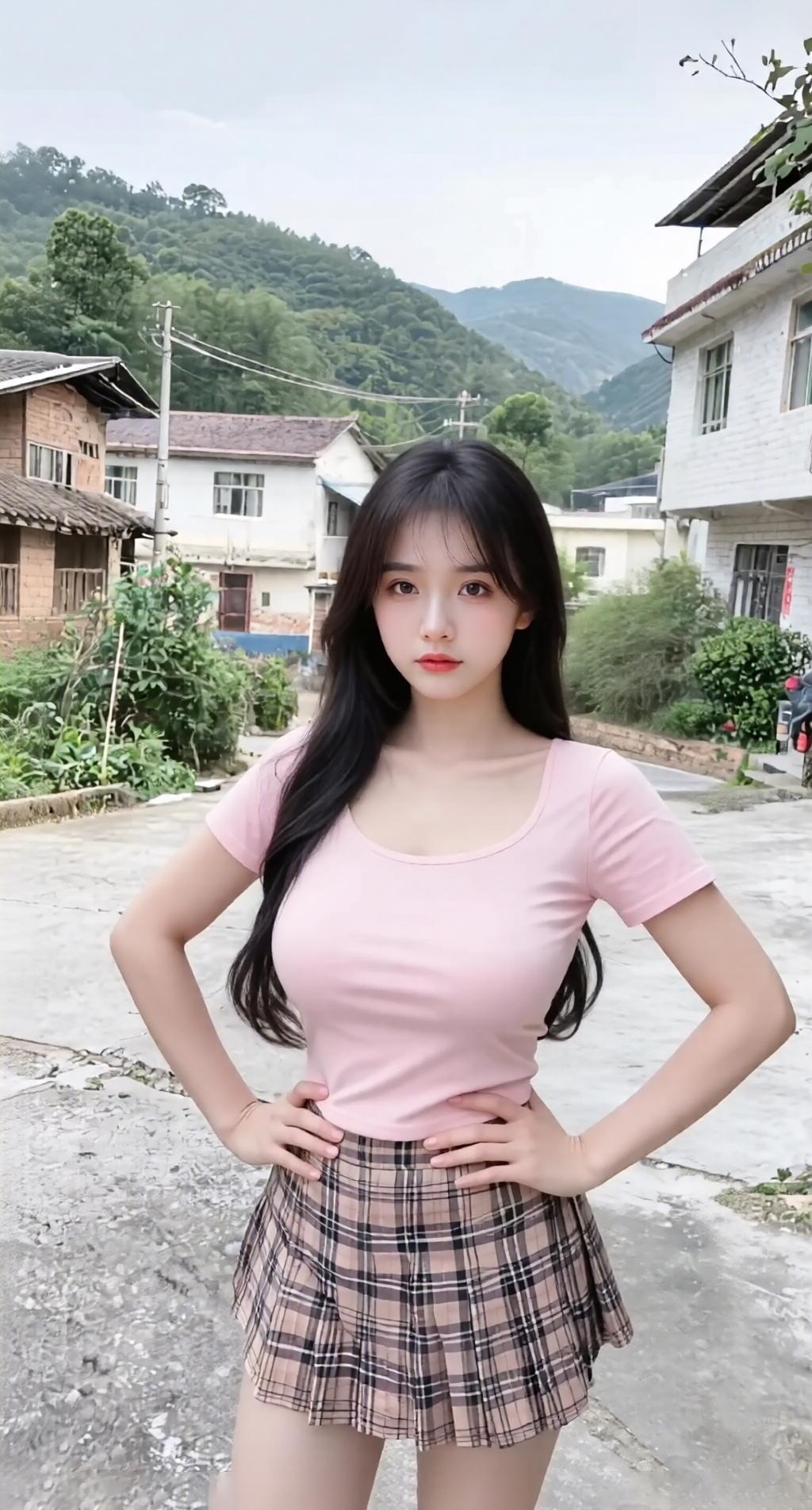 少女心爆棚的粉色T恤搭配格纹短裙,甜美可爱,元气满满!