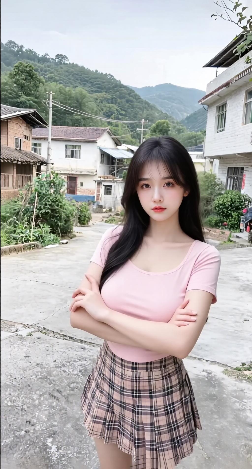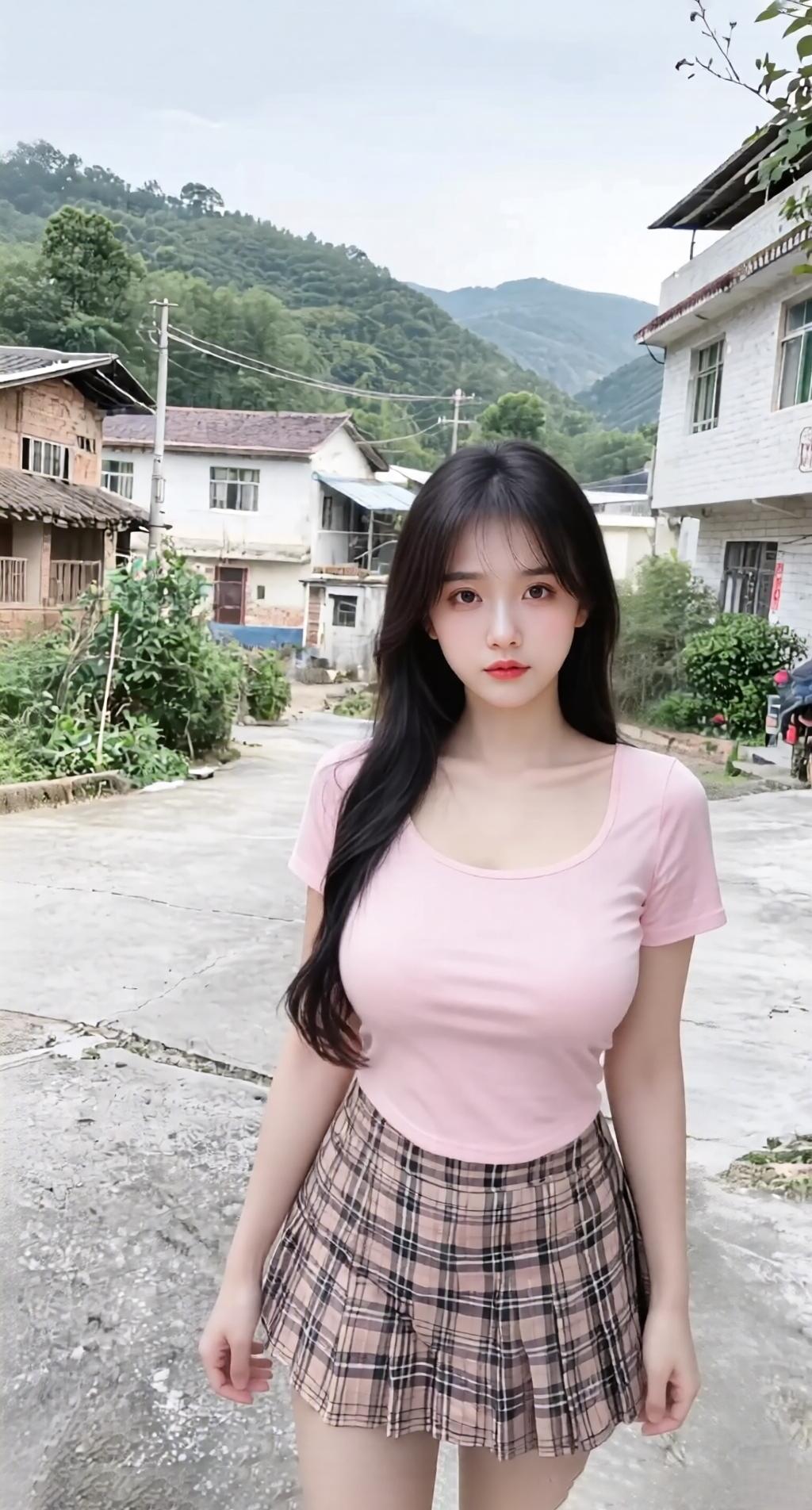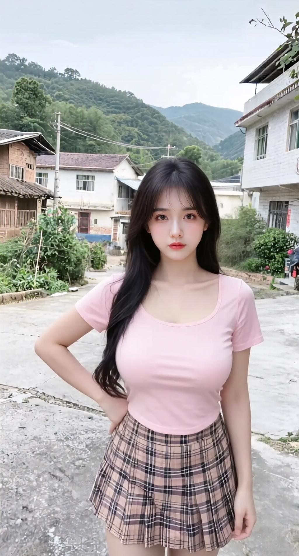 少女心爆棚的粉色T恤搭配格纹短裙,甜美可爱,元气满满!