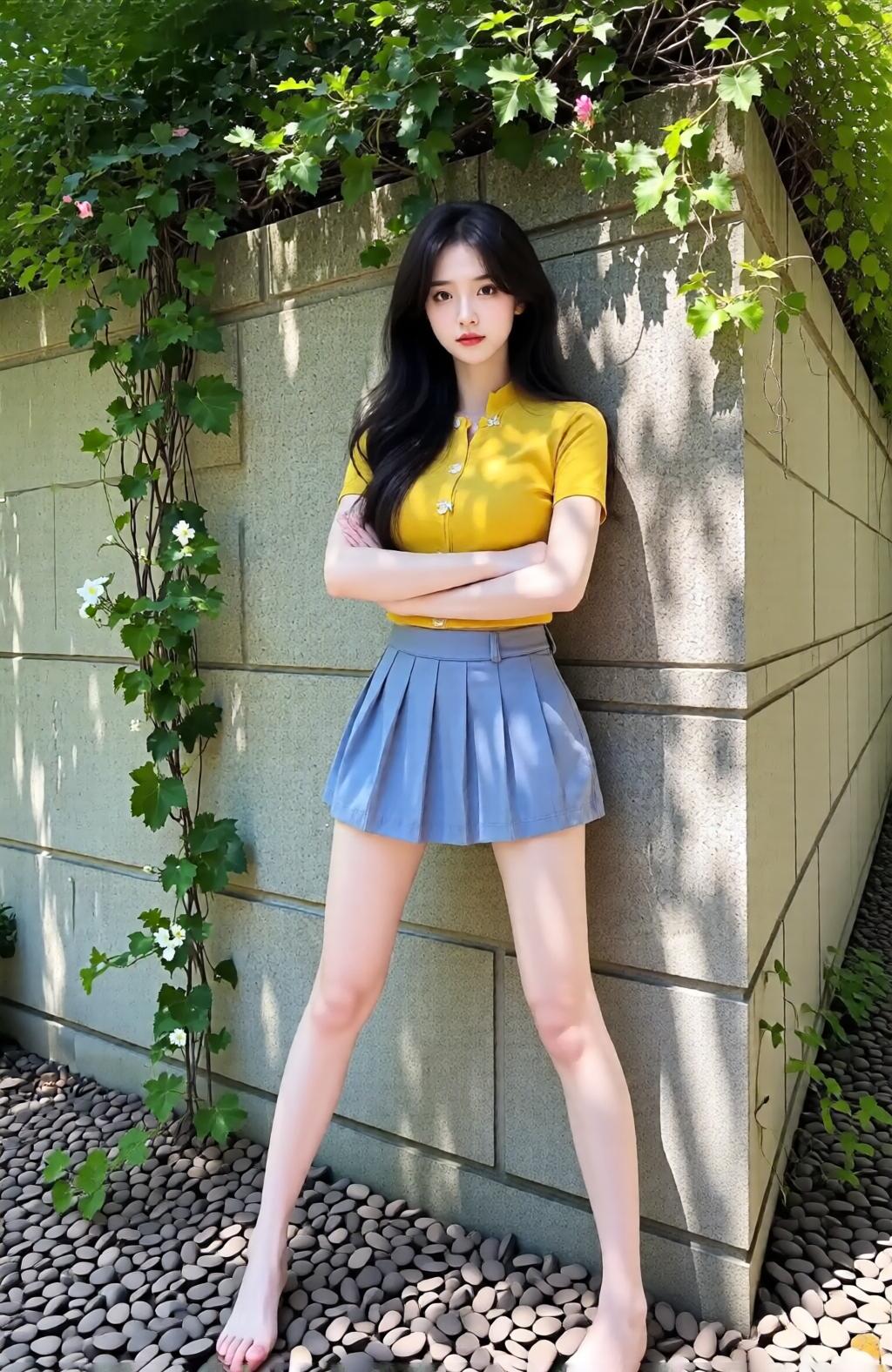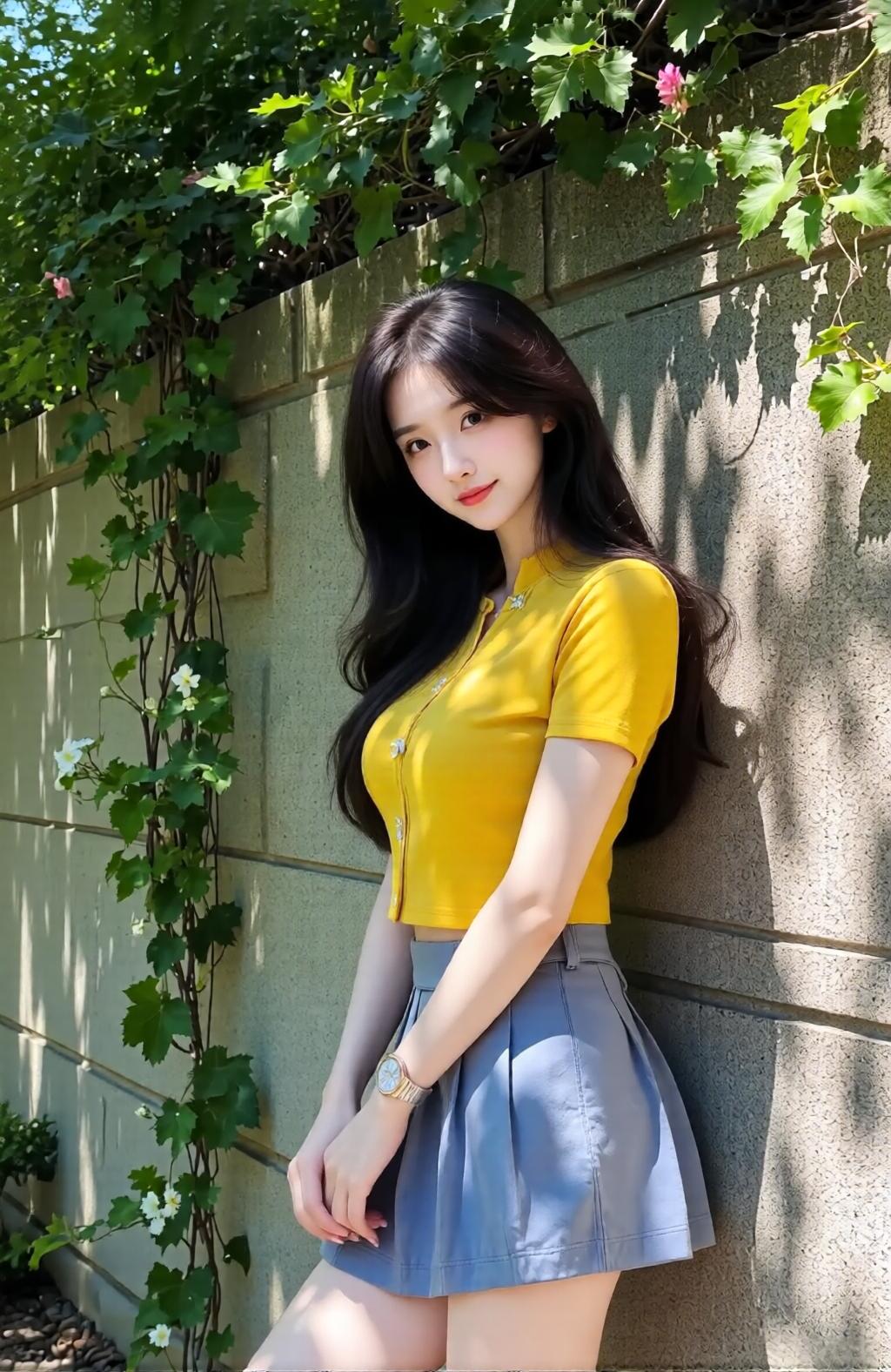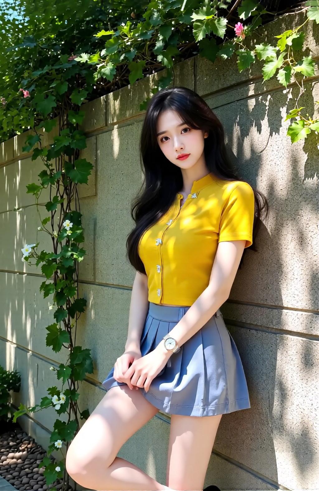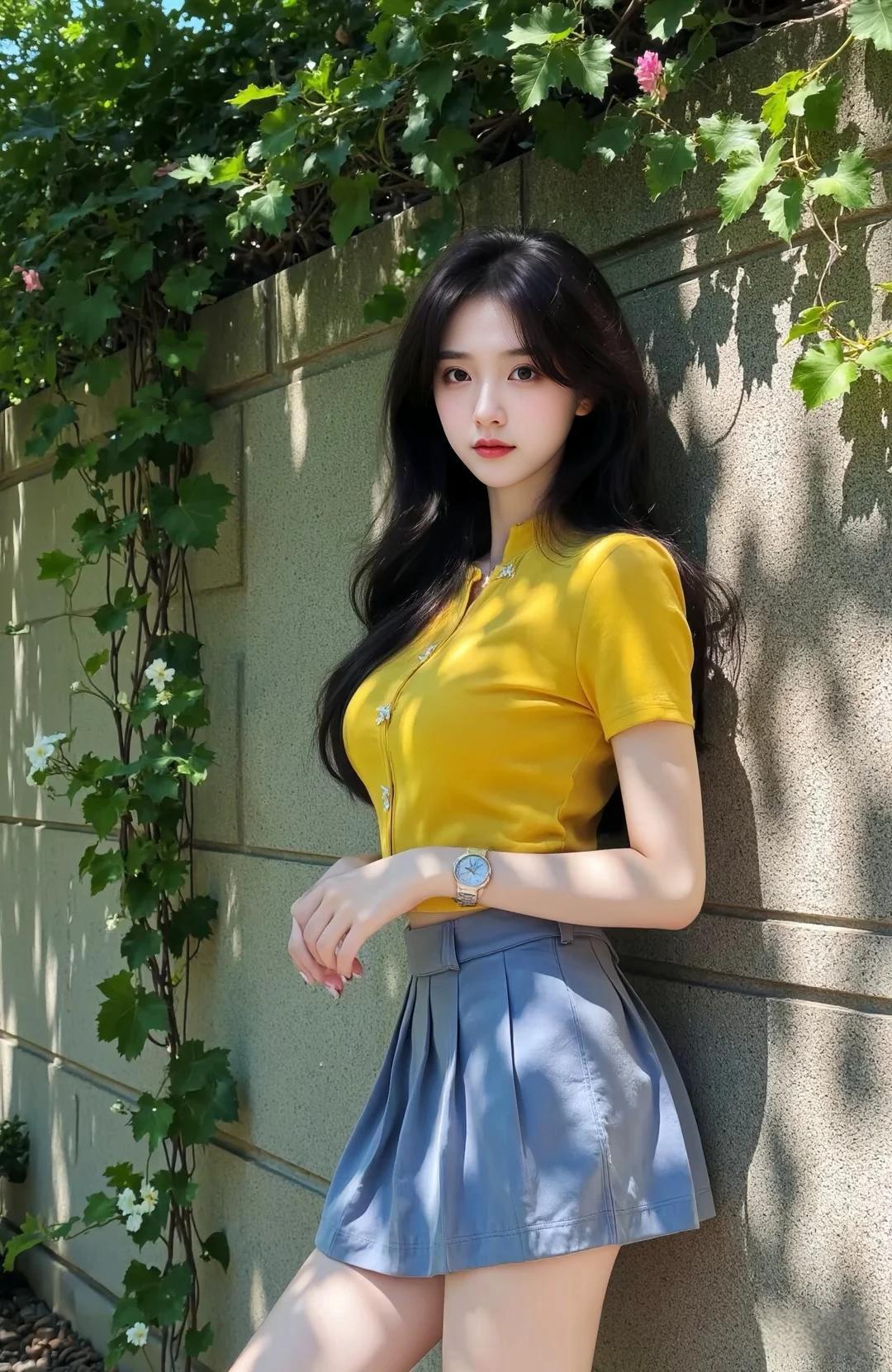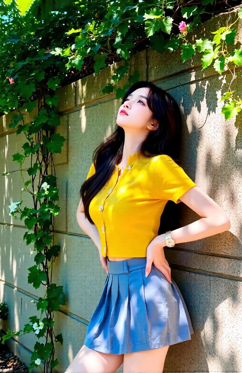 阳光明媚的午后,少女与绿植的清新邂逅。