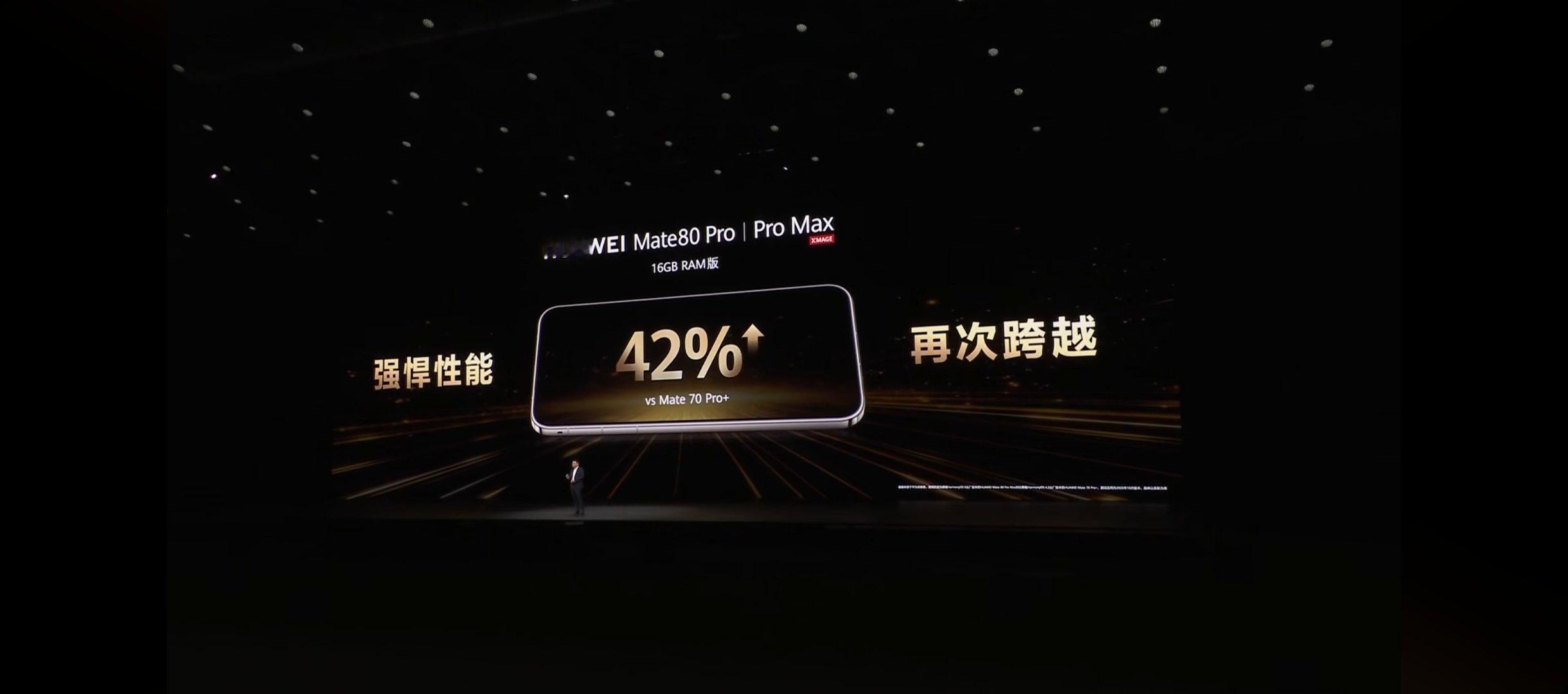 没有讲到具体的芯片。但是华为Mate80Pro的性能比上代提升了35%,Mate80Pro Max(16GB版本)相比上代性能提升42%。单看性能提升占比,算是非常大的升级,具体大家细细品。