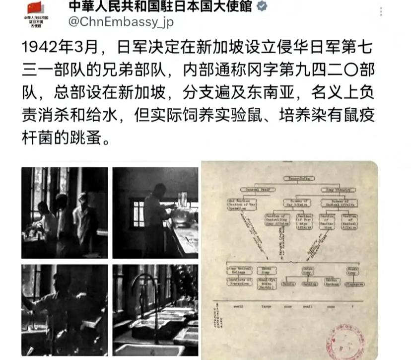 11月25日我国驻日大使馆公开的历史真相, 看完真的让人五味杂陈! 一直以"中立"自居的新加坡,居然藏着这样一段不敢细品的过往! 可能很多人都不知道,1942年3月,日军在新加坡安了个"大毒窝"——冈字第九四二〇部队,这可是侵华日军第七三一部队的亲兄弟!表面上打着"消杀给水"的幌子,背地里却疯狂饲养实验鼠、培育染有鼠疫杆菌的跳蚤,专门搞生物武器研发。 这可不是随口乱说,日本防卫省的档案铁证如山!部队编制表、年度预算单、实验鼠进口记录一应俱全,明确记载着这支部队每月能产出600万只带毒跳蚤。1943年投放到云南,1944年蔓延至广西,直接造成数万人无辜死亡,简直令人发指! 更值得注意的是,新加坡不只是总部,还在爪哇、马来、泰国设了分所,所谓的"给水设备"其实就是普通防蚊帐篷,实质是日军在东南亚的生物武器后勤线。面对这样的历史铁证,新加坡外交部25小时后才慢悠悠回应,只说"历史问题应交由学者研究",这冷处理的态度实在让人难以接受。 当年日军把毒巢选在新加坡,是想控制马六甲海峡航运命脉;如今美日"第一岛链"计划,又把这里当补给点,历史的剧本竟如此相似。我们揭开这段往事,不是要翻旧账,而是想提醒:中立不是装失忆的借口,尊重历史才是底线。 铭记历史从不是为了延续仇恨,而是为了不让悲剧重演。那些被带毒跳蚤夺走的生命、那些被生物武器伤害的家庭,不该被轻易遗忘。新加坡真要想站在中立立场,难道不该公开完整历史档案、正视自家土地上的黑历史吗?你对这段被尘封的历史有什么看法?评论区一起聊聊~