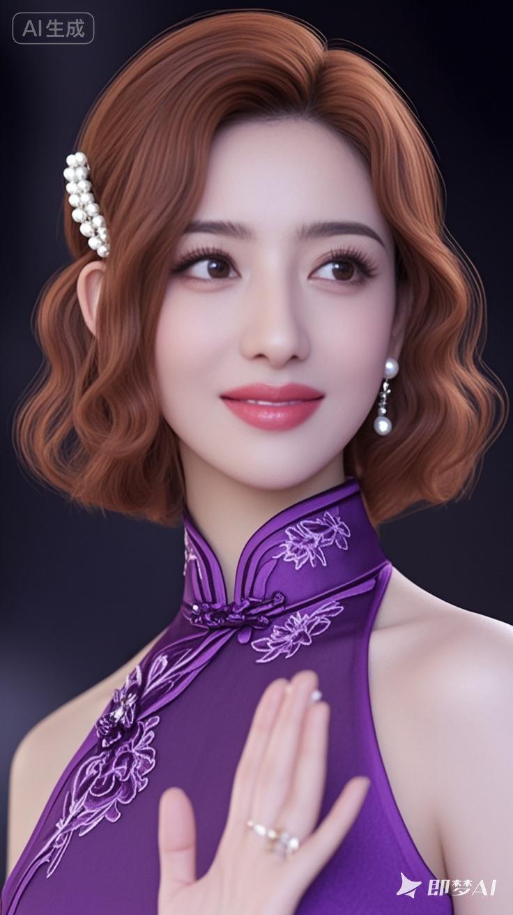 优雅紫衣美人,微笑动人,梦幻般的美!