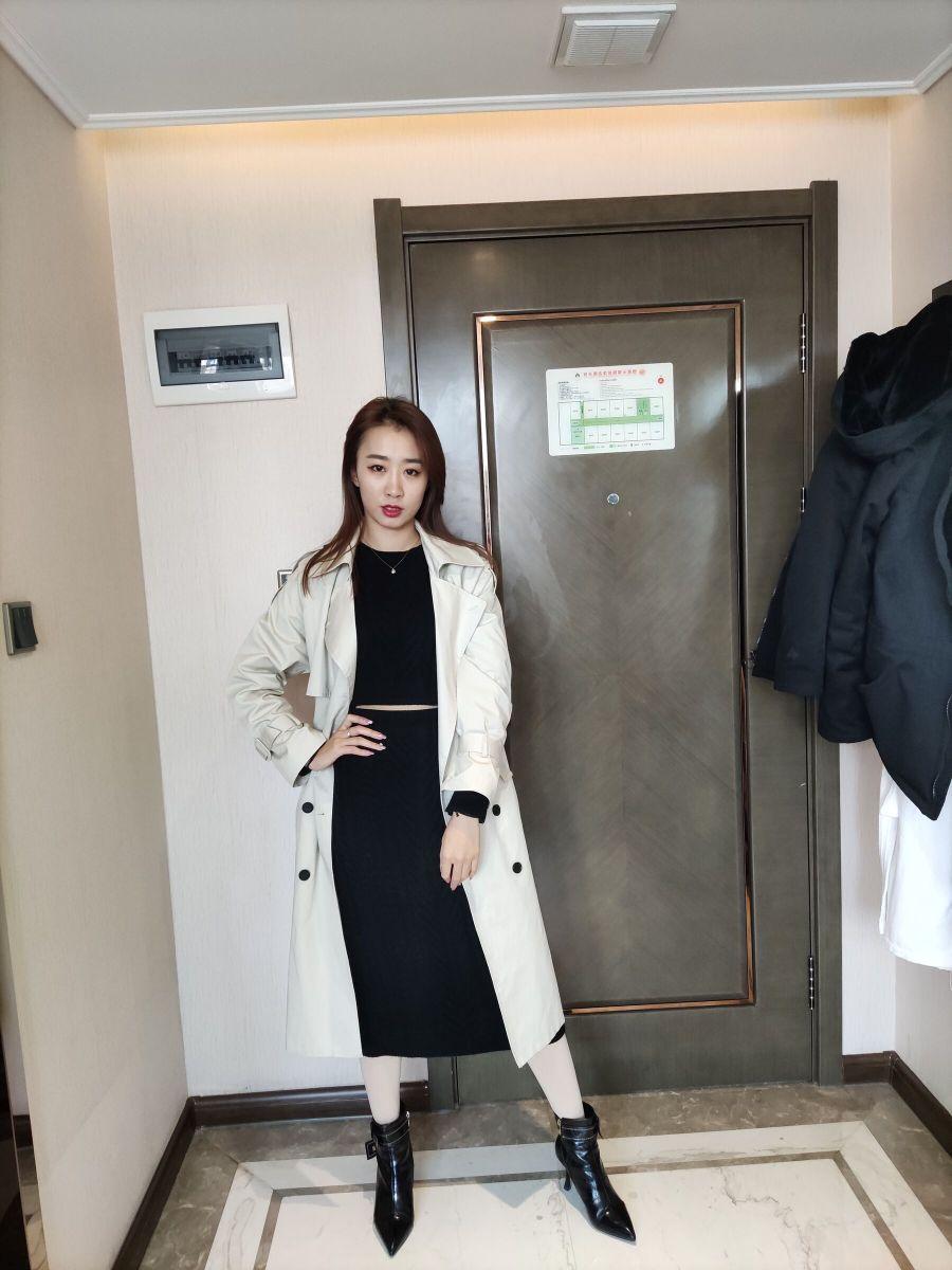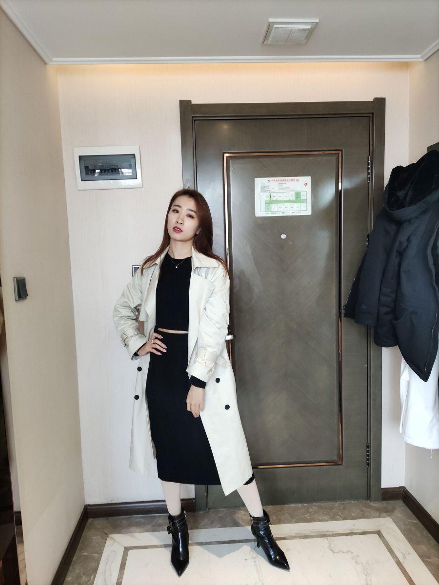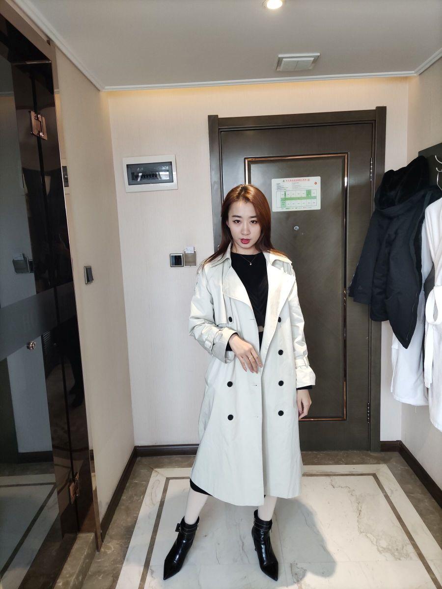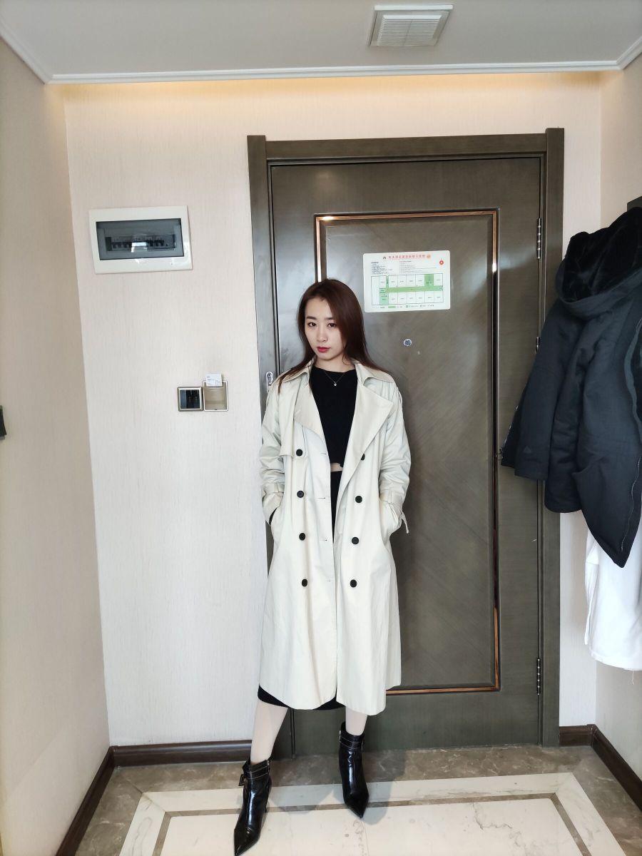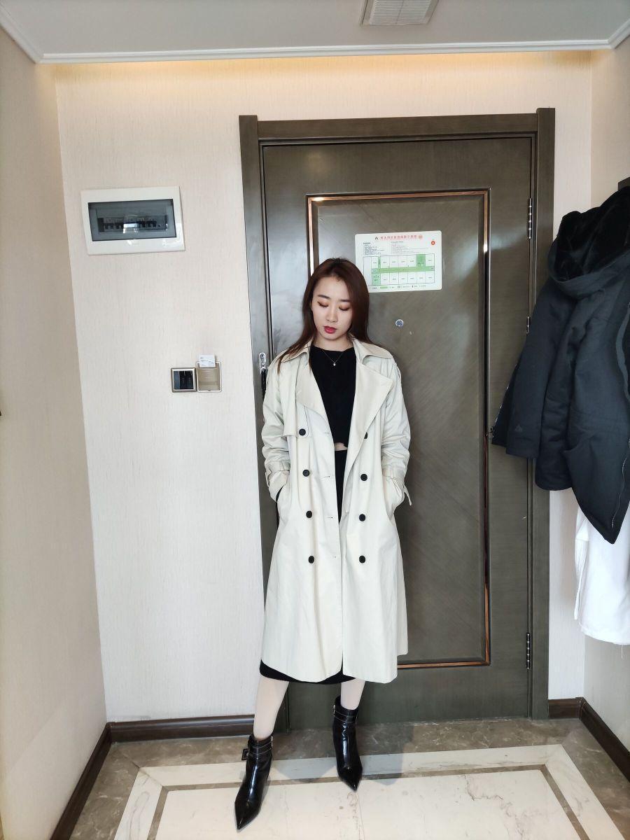 晒图笔记大赛米白双排扣风衣挺括有质感,内搭黑色露腰套装,搭配带金属扣饰的黑色尖头短靴,在居家场景中,以经典与性感的搭配,呈现出轻熟风的时尚张力,尽显优雅干练。