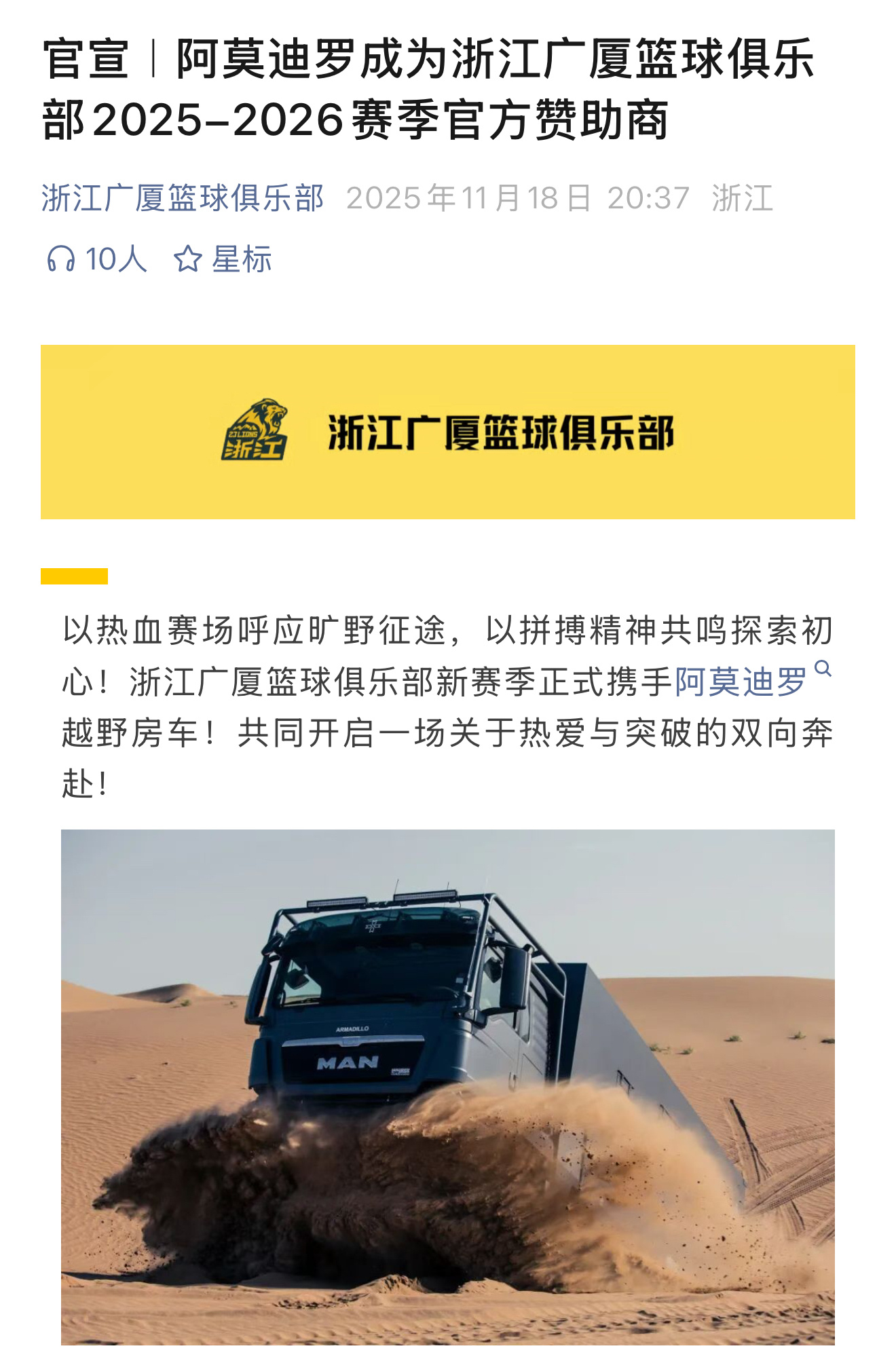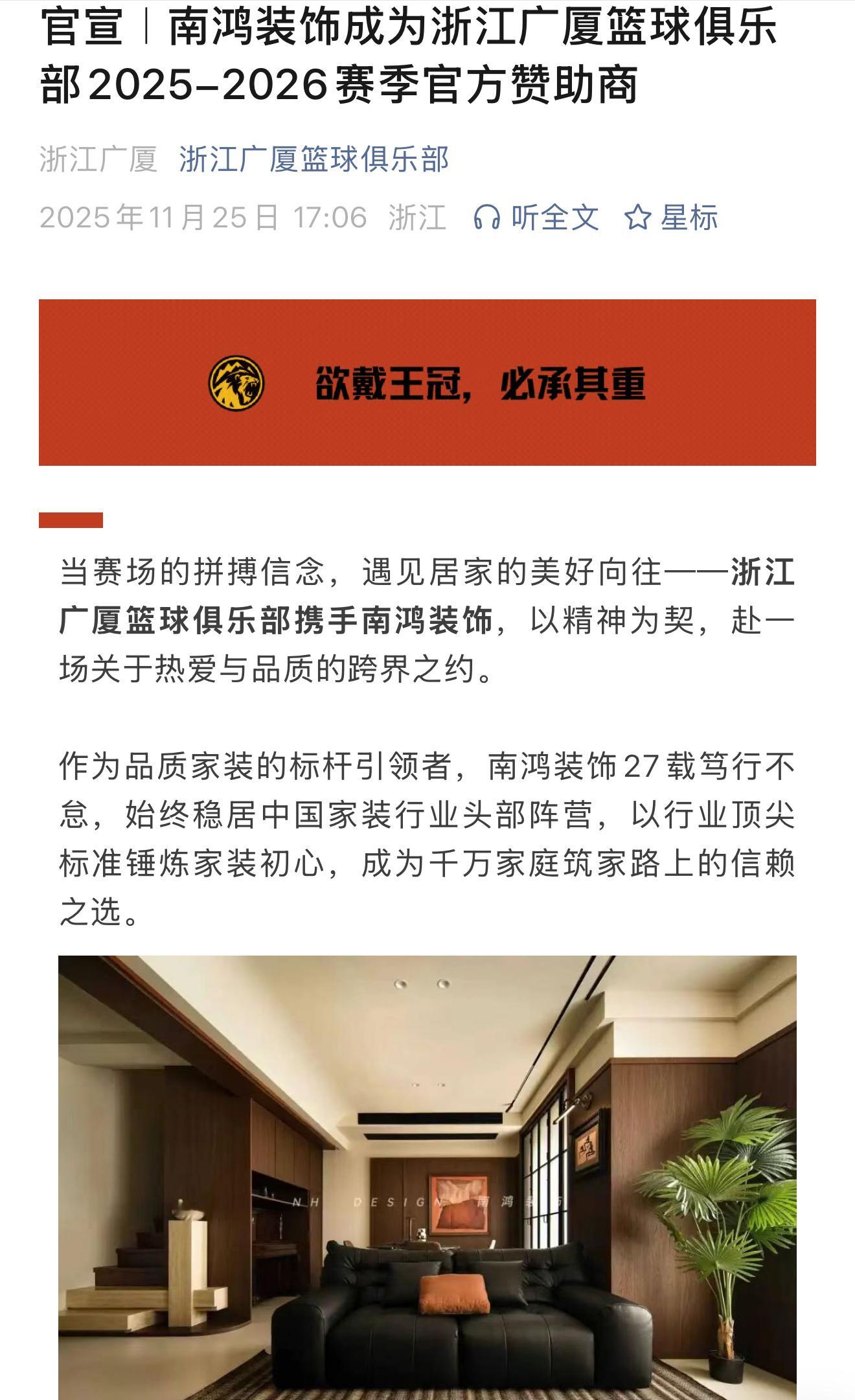 卫冕冠军浙江广厦在新赛季开始前敲定两家赞助商