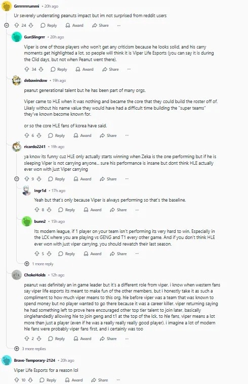 Peanut绝对是游戏中的指挥,但这与Viper的角色不同。我知道当西方粉丝说ViperLifeEsports时,是为了嘲笑其他成员,但我真的把它看作是对Viper对这个俱乐部意义的极大赞扬。在Viper之前,HLE是一支以花钱而闻名的队伍,但没有选手愿意去那里,因为它会毁掉职业生涯。Viper回来并说他还有一些东西要在这里证明,这鼓励了其他顶级人才后来加入,基本上凭借一己之力让HLE加入了GENG和T1的行列,成为LCK的顶级队伍。对于HLE的粉丝来说,Viper的意义远不止一名选手(即使他是一名非常非常非常优秀的选手)。我想很多现在HLE的粉丝可能首先是Viper的粉丝,我当然也是。