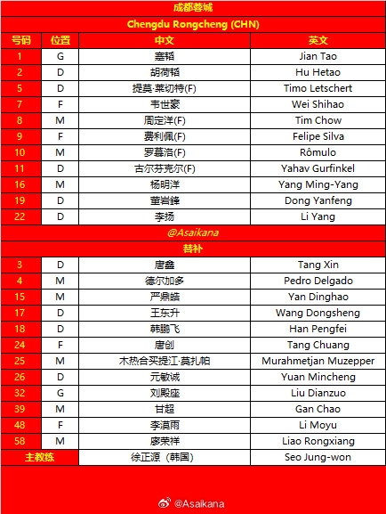 直播吧11月25日讯北京时间20点15分,亚冠精英联赛东亚区第5轮,成都蓉城vs广岛三箭,赛前双方首发公布!