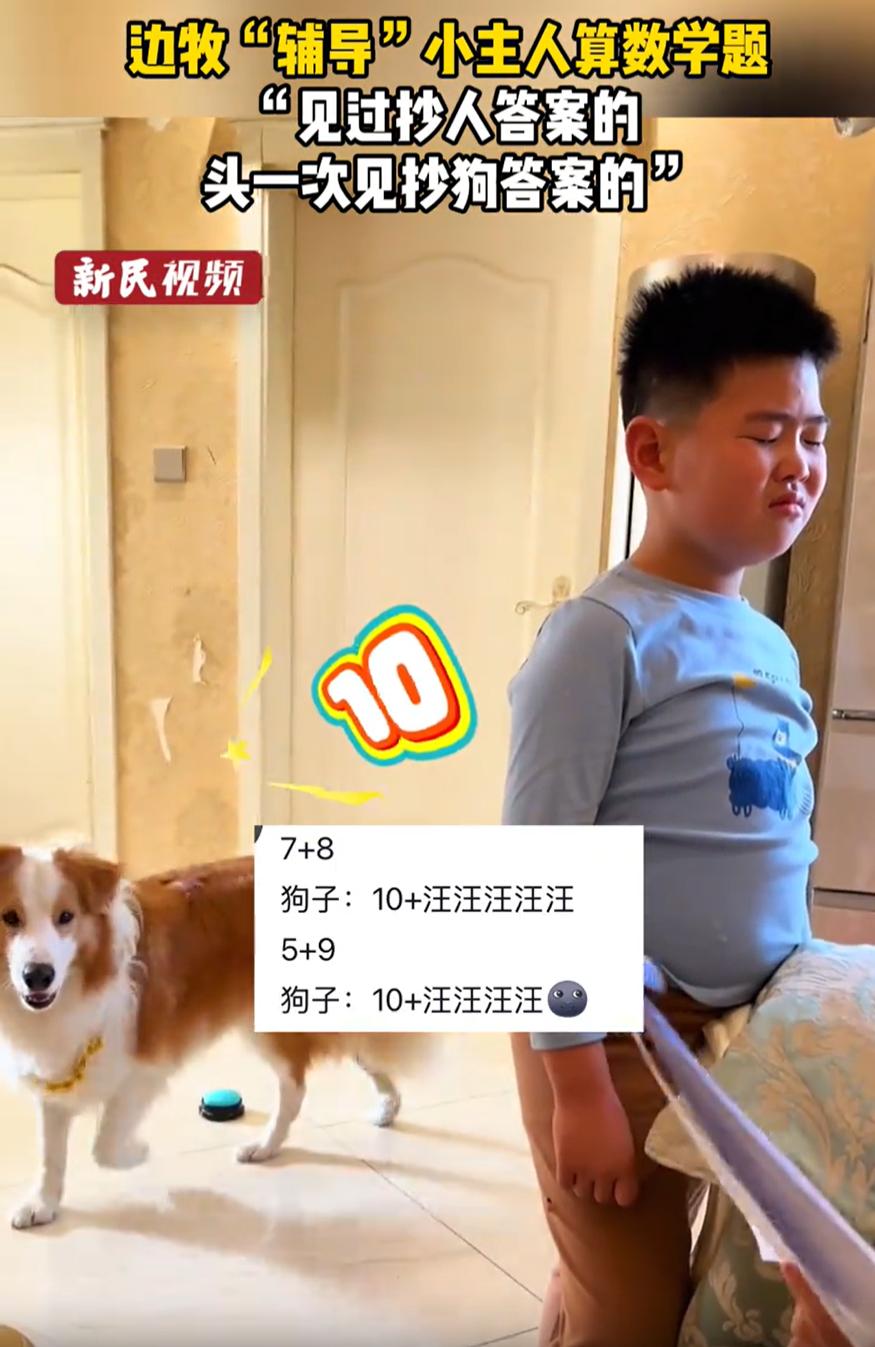 “真不愧是边牧!”河南,一名小男孩作业错的太多,直接被姐姐训哭了,可奇怪的是,当姐姐再把错题读出来时,男孩却能准确说出答案,后来家人觉得不对劲,回看视频才发现,竟然是家里的边牧在旁边提醒答案。网友:见过抄人答案的,头一次见抄狗答案的 当天,小男孩正对着作业本发愁。姐姐走近一看,发现弟弟的数学作业错题连篇,连7+8这样的基础题目都算错了 姐姐生气地拿起作业本,弟弟见状立刻站起来,委屈的眼泪直往下掉。他不停地用袖子擦眼泪,哽咽声引起了家中边牧的注意 这只聪明的边牧踱步过来,仔细观察着小主人。当姐姐大声质问“7+8等于几”时,男孩只是哭泣不回答。就在这时,边牧突然走到旁边,用爪子按下了数字“10”的语音按钮,随后连续吠叫了五声 哭声戛然而止,男孩立刻回答:“15。” 姐姐半信半疑,又问了另一道错题:“5+9呢?” 边牧再次按下“10”的语音键,然后叫了四声 男孩马上回答:“14。” 家里人回看视频的时候才发现,小孩不是开窍,是狗太聪明,每当姐姐提问,边牧就会用它的方式给出提示,先按下“10”的语音,再通过叫声补充个位数,在旁边给出正确答案 孩子妈妈说,这只边牧是家养了多年的爱犬,从小就展现出惊人的智慧。自己曾教它一些简单的数学运算,没想到它不但学会了,还在小主人遇到困难时出手相助 有网友调侃说:孩子在窝囊与哭之间选择了窝囊的哭着听边牧给答案 不得不说,边牧的聪明真不是吹的,这种聪明,不是做高难度动作那种展示型的,是把心思用在了人身上。看懂情绪,会接话茬,甚至还会在关键时候替小主人扛压力 孩子的作业能力要练,边牧的聪明不能变成孩子依赖的捷径,但这么一段互动说明一个事,家庭的温度不需要太大动作,一个懂事的宠物、一句轻松的提醒、一次替小主人出头,就能让一个小孩觉得世界没有那么可怕