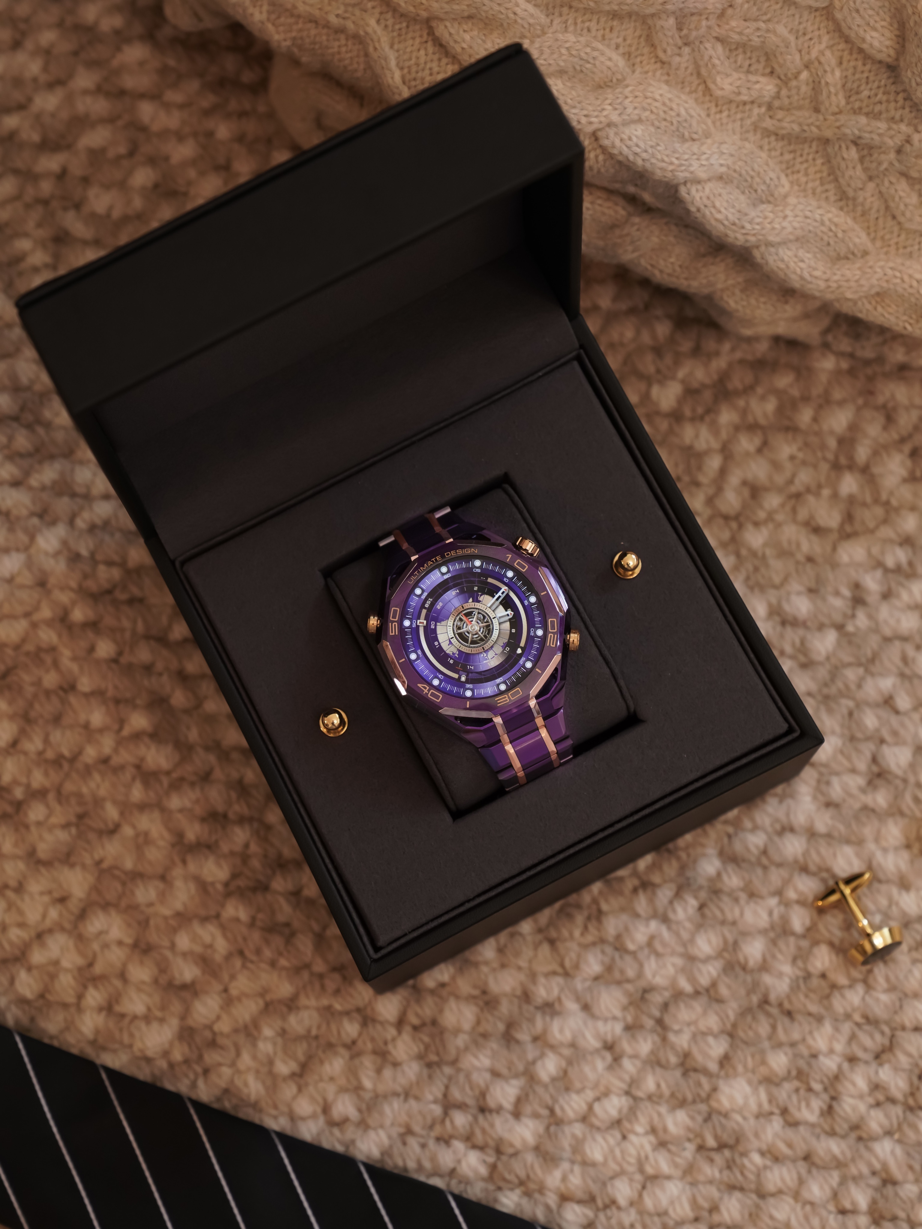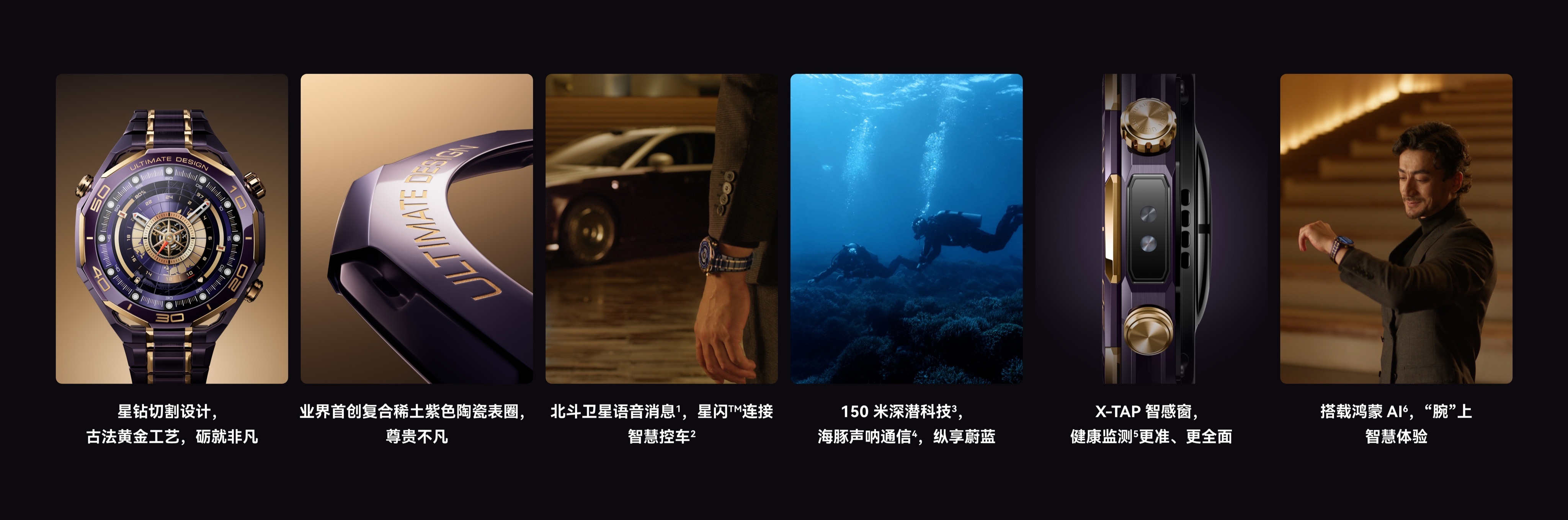 华为WATCH UlTIMATE DESIGN 非凡大师紫金款来了,看起来相当尊啊,不单只是18K锻金紫色陶瓷表圈和钛合金间金表带带来的奢华质感,性能更是拉到了顶尖水准。eSIM独立通信 + 北斗卫星语音消息,即便碰上没信号也能安心联络,150米潜水模式搭配海豚声呐通信,户外探险可以提供全程的守护,华为紫金表,腕上紫气金来。 并且还有全面的健康管理,X-TAP智感窗30秒就可以评估血管弹性,包括冠心病风险评估、睡眠呼吸暂停检测等健康功能也全都有,时刻了解身体状况,加上融入了星闪之后,还能实现尊界S800手势操控开门,开尊车戴尊表,尊得不得了,余总已上手体验,这属于是尊贵体验和硬核科技完美相融了,我猜应该没人不喜欢吧