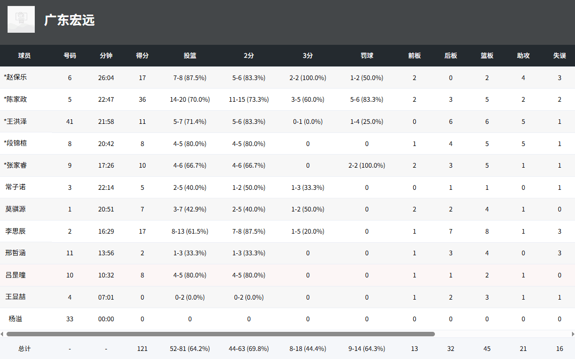 广东U19男篮:陈家政36分、赵保乐17分、李思辰17分