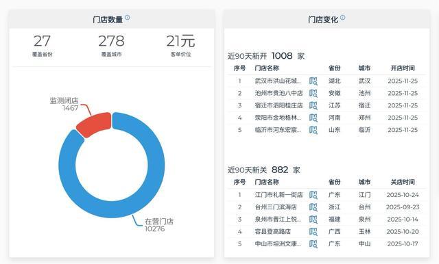 近90天新开约1000家门店,同期关闭超800家——行业监测平台的最新数据表明这位新晋“万店俱乐部”成员在狂奔之后,正面临着前所未有的复杂考验。