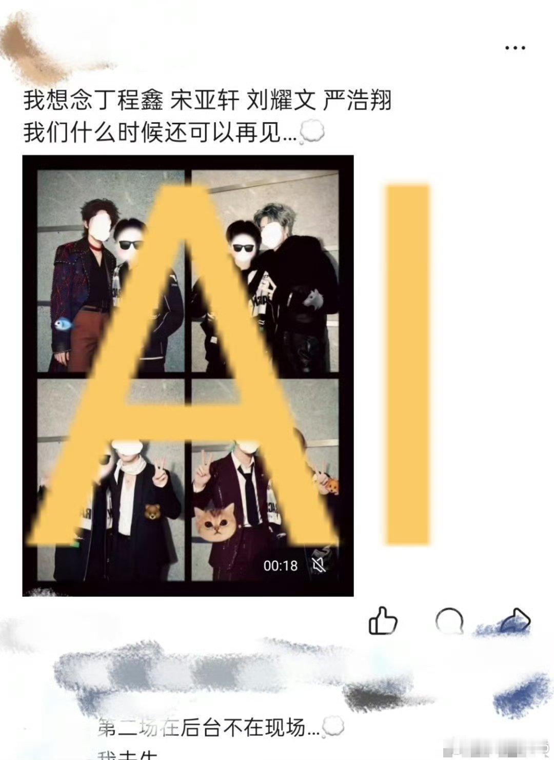 什么时候能回到那个AI人人喊打的时刻有人用ai制作了和时代少年团在演唱会后台的合照,把他们架在火上烤,还好对接后面辟谣了说是AI,时团七个人就这样被ai陷害