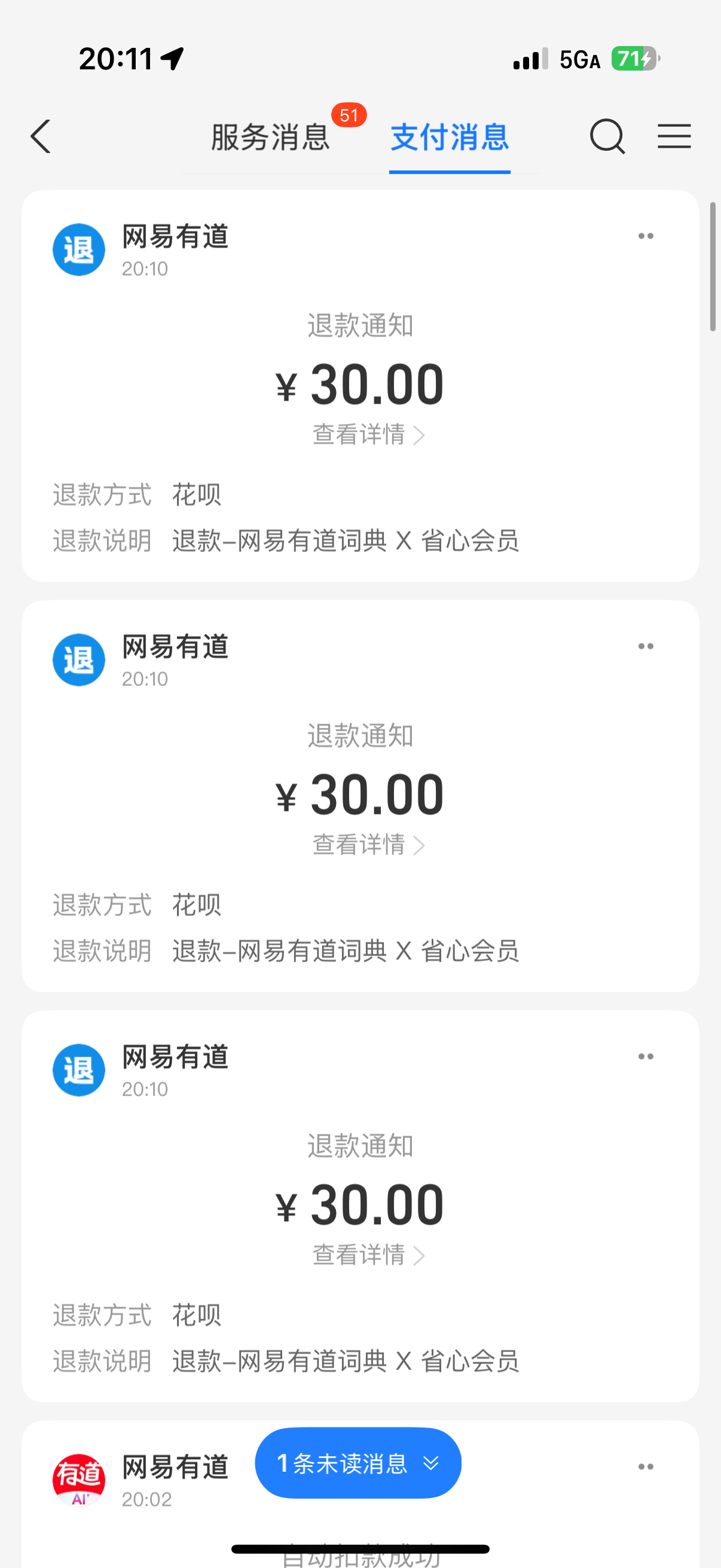 刚发现网易有道不知道啥时候开通了会员三个月扣了我90块打了客服电话 秒退给我了