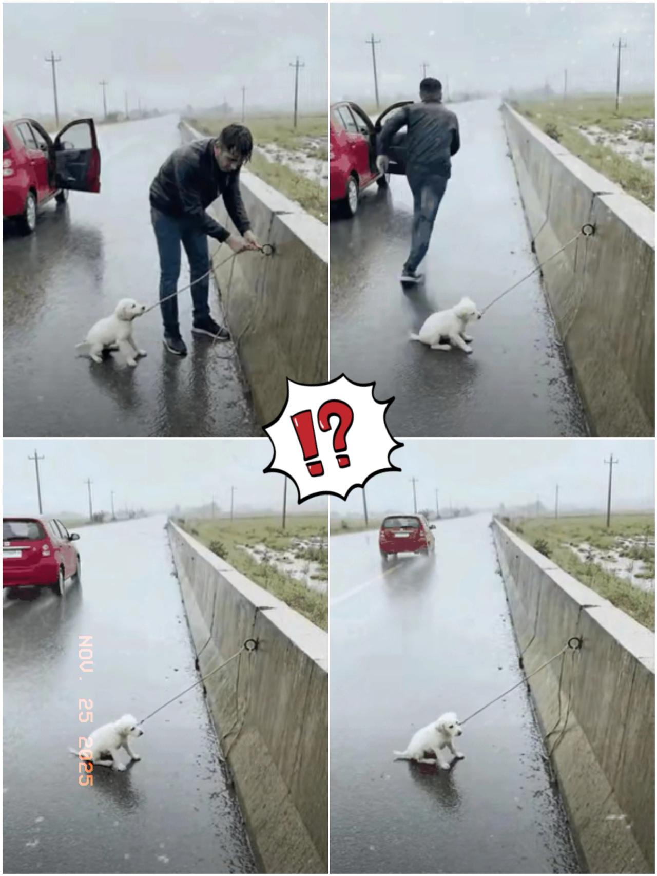 天下着雨,男子拉着一条狗狗正把它拴在路边。接着上车就快速开走,狗狗“汪汪”叫着,男子却头也不回直接开着车就走掉了。这场景,看得人心里直发酸! 狗狗曾为他看家护院,给他带来无尽欢乐,是忠诚的伙伴啊。可男子就这么无情抛弃,让狗狗在雨中孤苦伶仃,任由雨水拍打着狗狗的身体,难道曾经的陪伴,在他眼里就一文不值?难道对狗狗就没有一丝怜悯? 这男子做法实在让人气愤!狗狗也是有感情的,它把主人当成全世界,主人却如此狠心。真心希望这样的抛弃别再发生,每一只狗狗都值得被温柔以待。大家身边有没有遇到过类似的事呢?快来评论区说说,一起为狗狗发声!